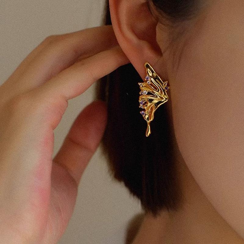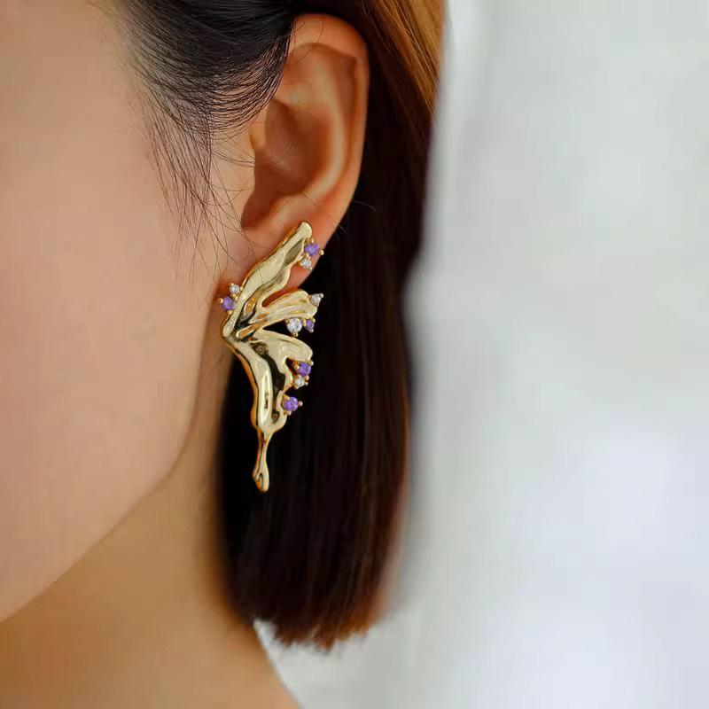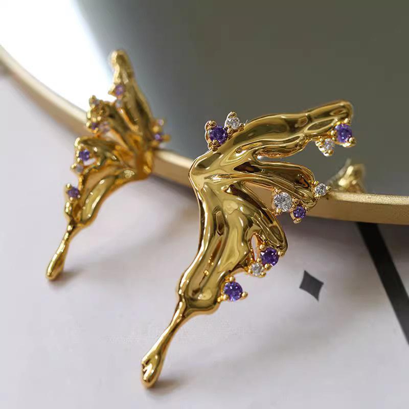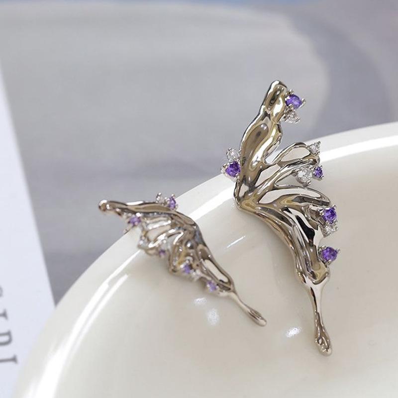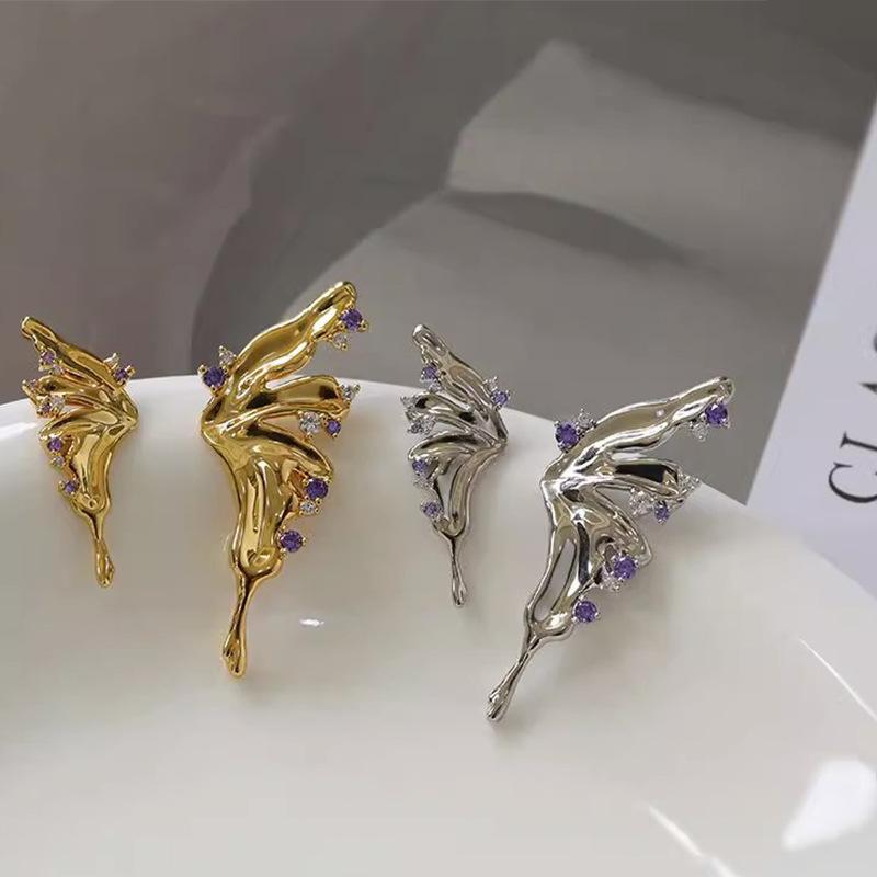 Compre High-end Cold style líquido assimétrico borboleta brincos nicho design doce cool brincos personalizados Nova fêmea elegante no atacado no Joom.pro