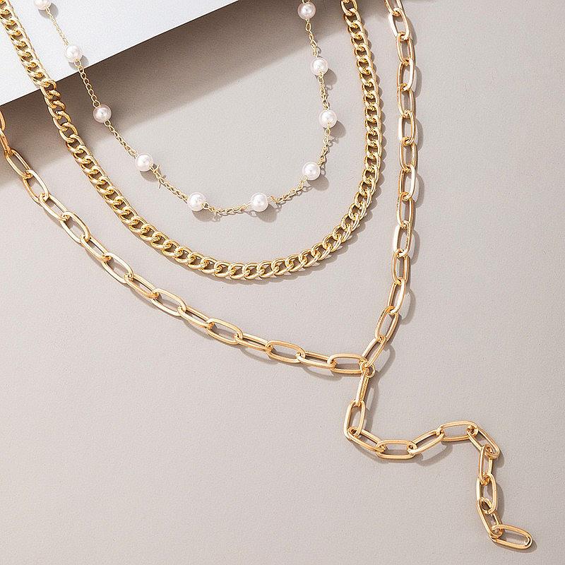 Compre Europeu e Americano cross-border jóias moda imitação pérola personalidade liga cadeia feminina punk cruz cadeia borla multi-camada colar no atacado no Joom.pro