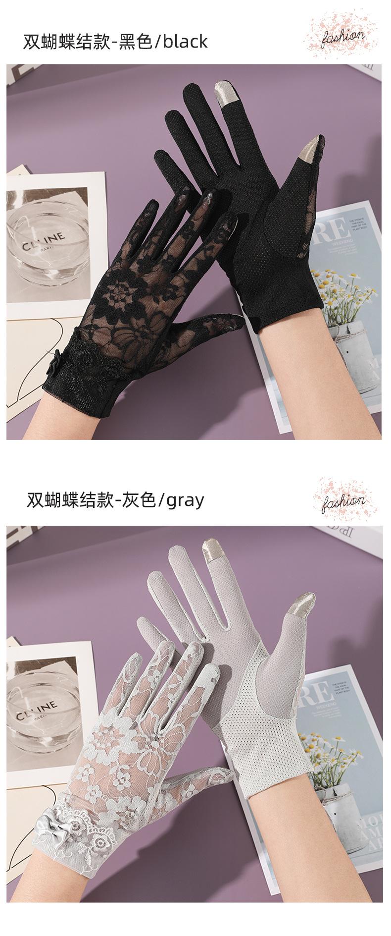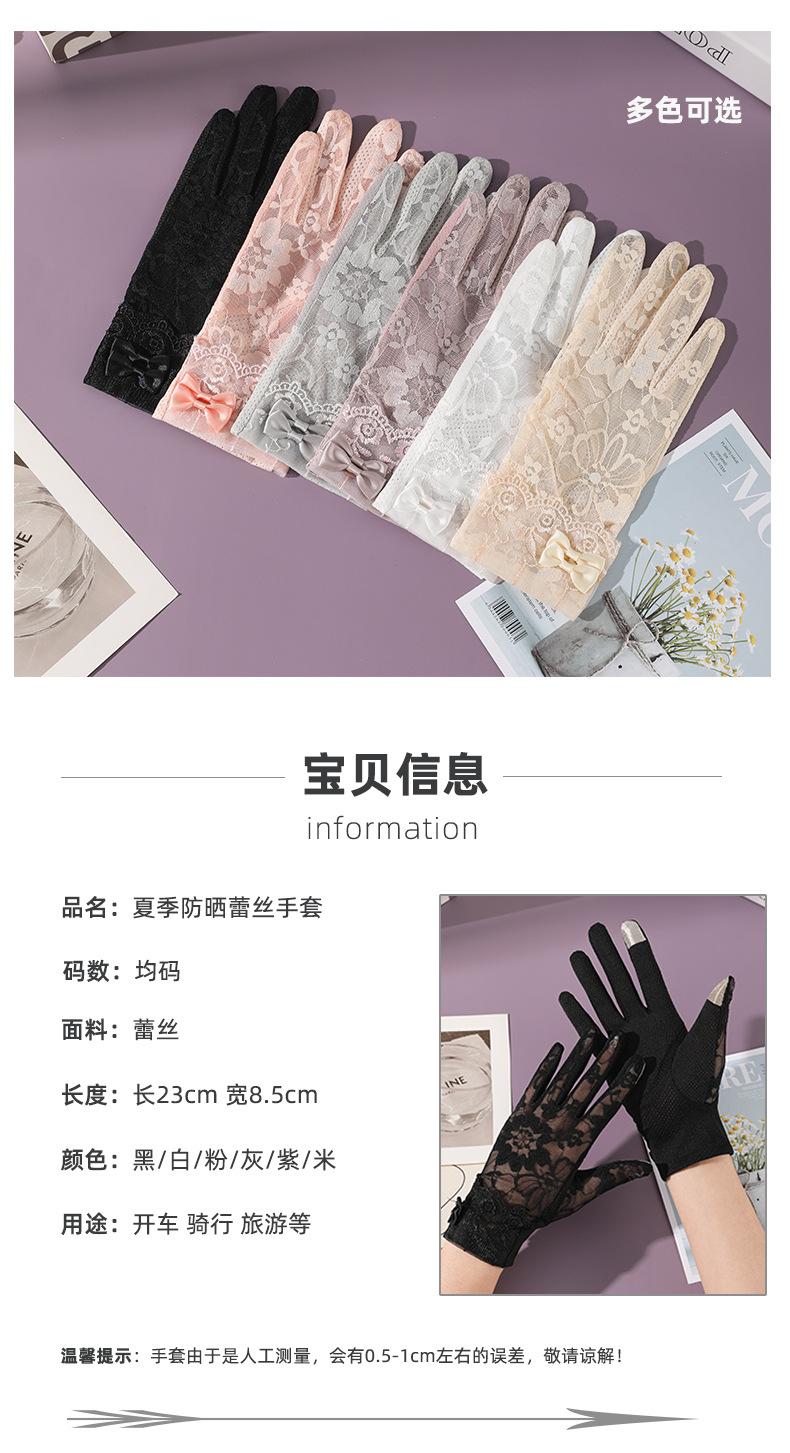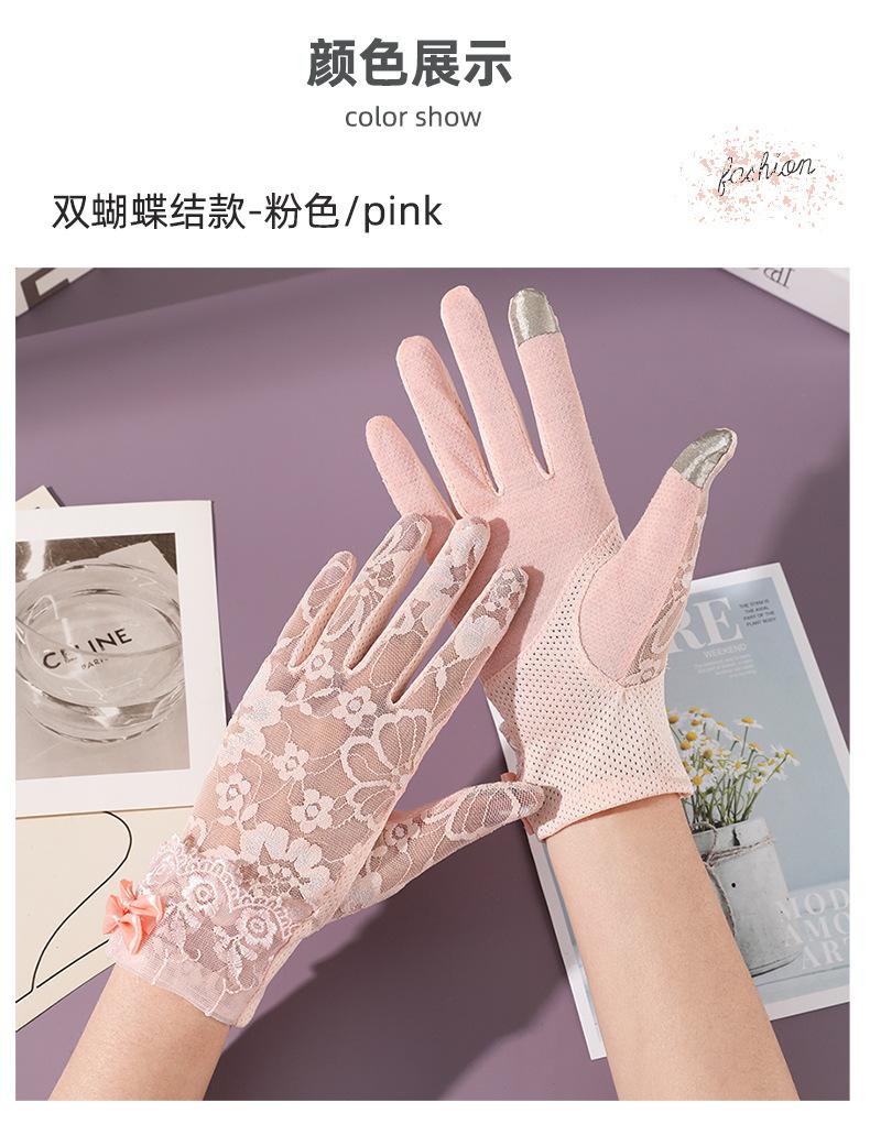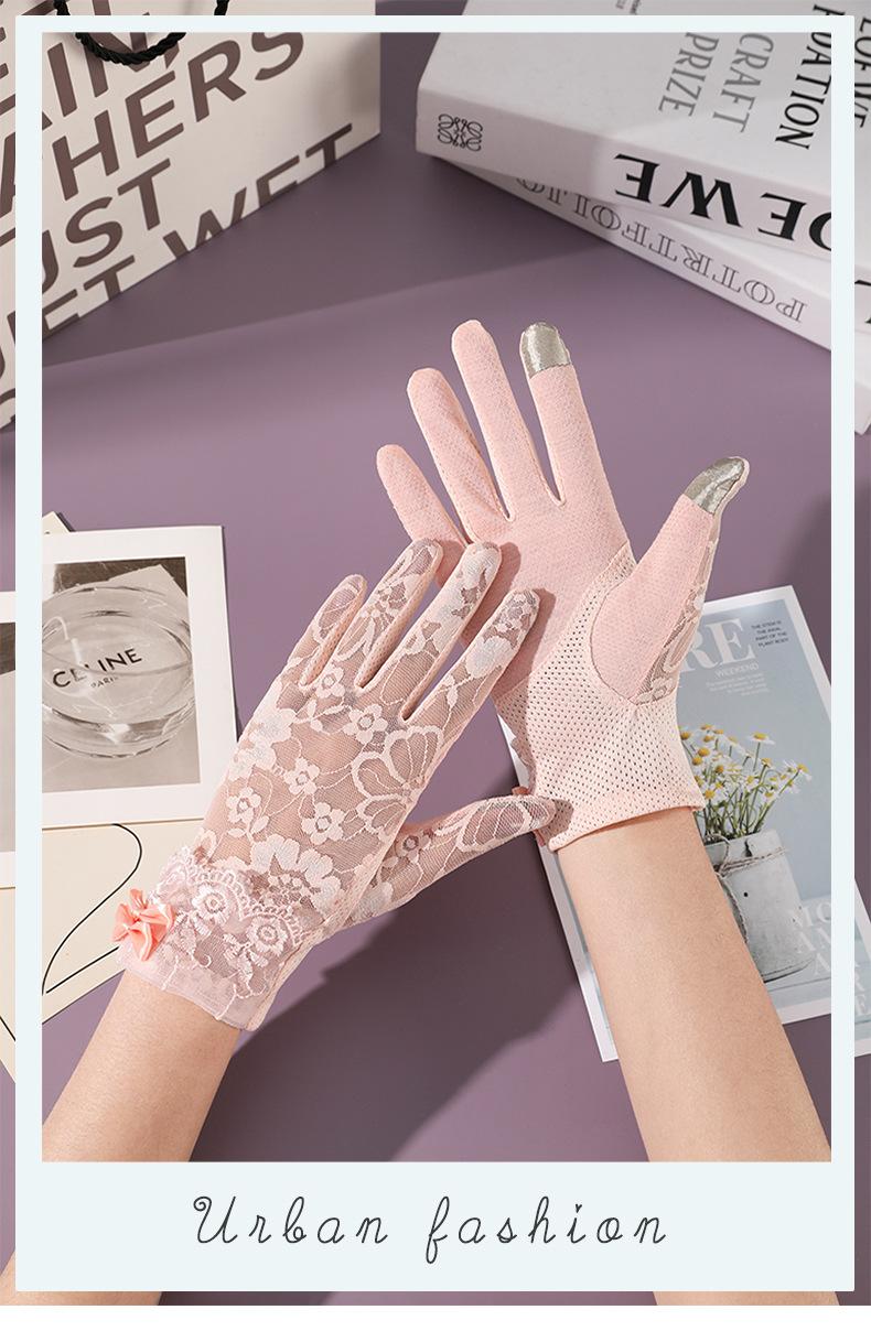 Guantes de protección solar para mujer, guantes finos de encaje para pantalla táctil de primavera y verano, guantes transpirables para conducir con sombrilla, guantes de ciclismo al aire libre
