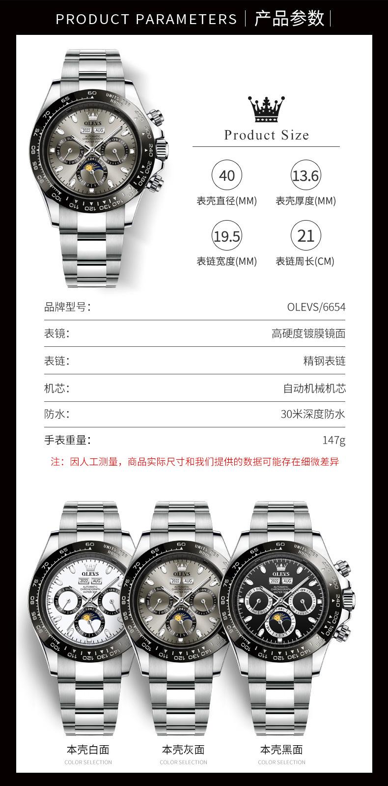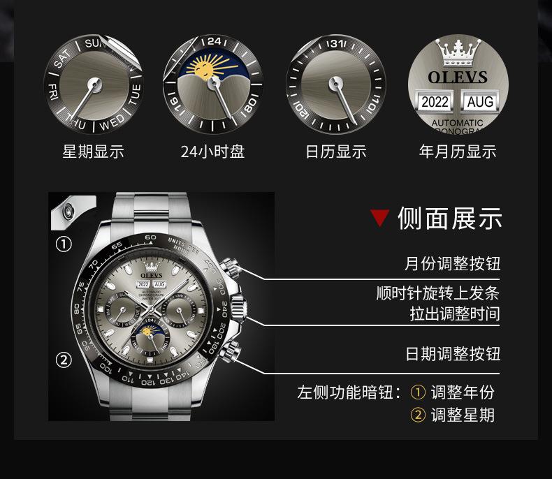 [Movimento]: Movimento mecânico totalmente automático, melhor qualidade, cronometragem estável e precisa!