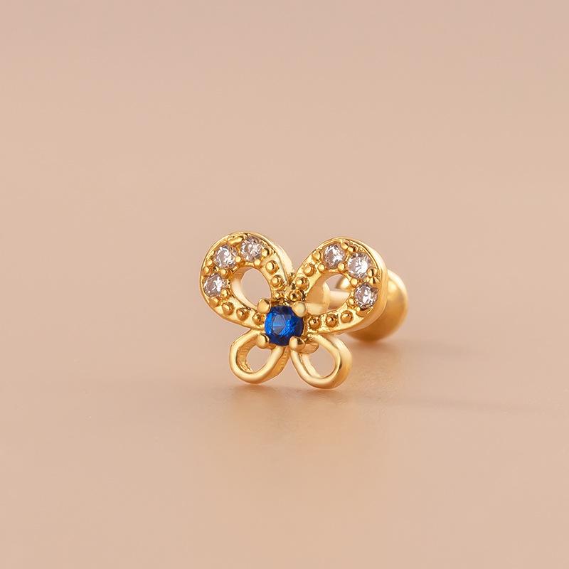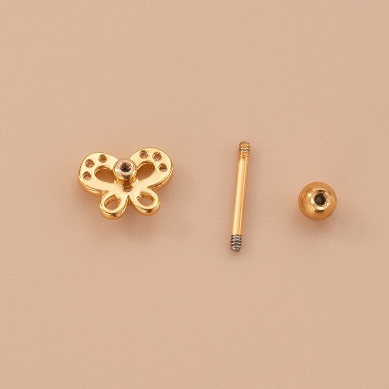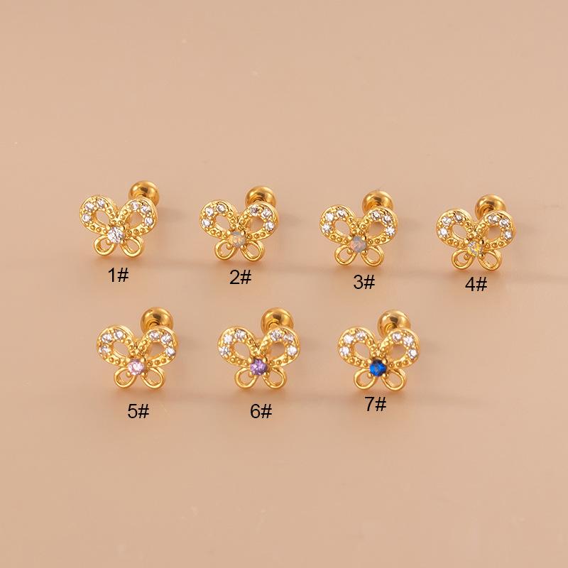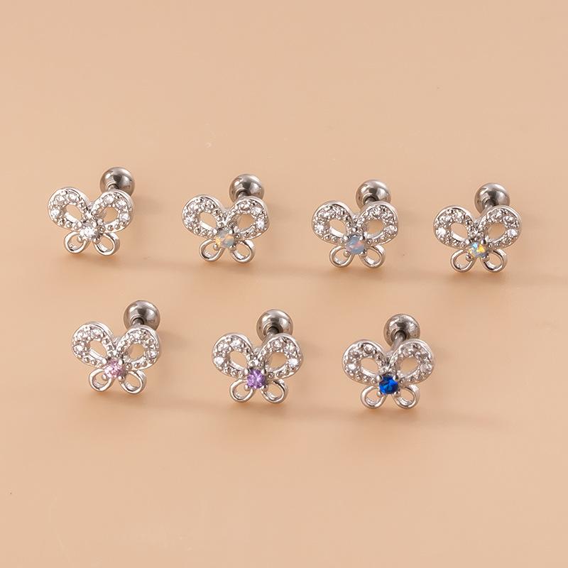 | Nome do Produto | Parafusos de cabeça dupla de zircônia borboleta oca, haste fina de aço inoxidável, brincos de cartilagem da moda coreana |