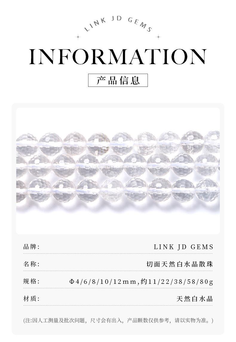Jingde Jewelry Natural Facetado Cristal Branco Pulseira de Contas Soltas Semi-acabado Contas DIY Jóias Contas Redondas Acessórios Atacado