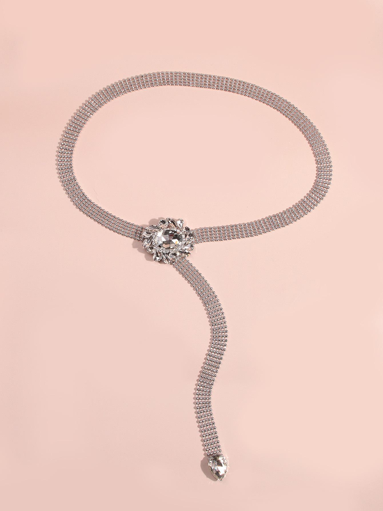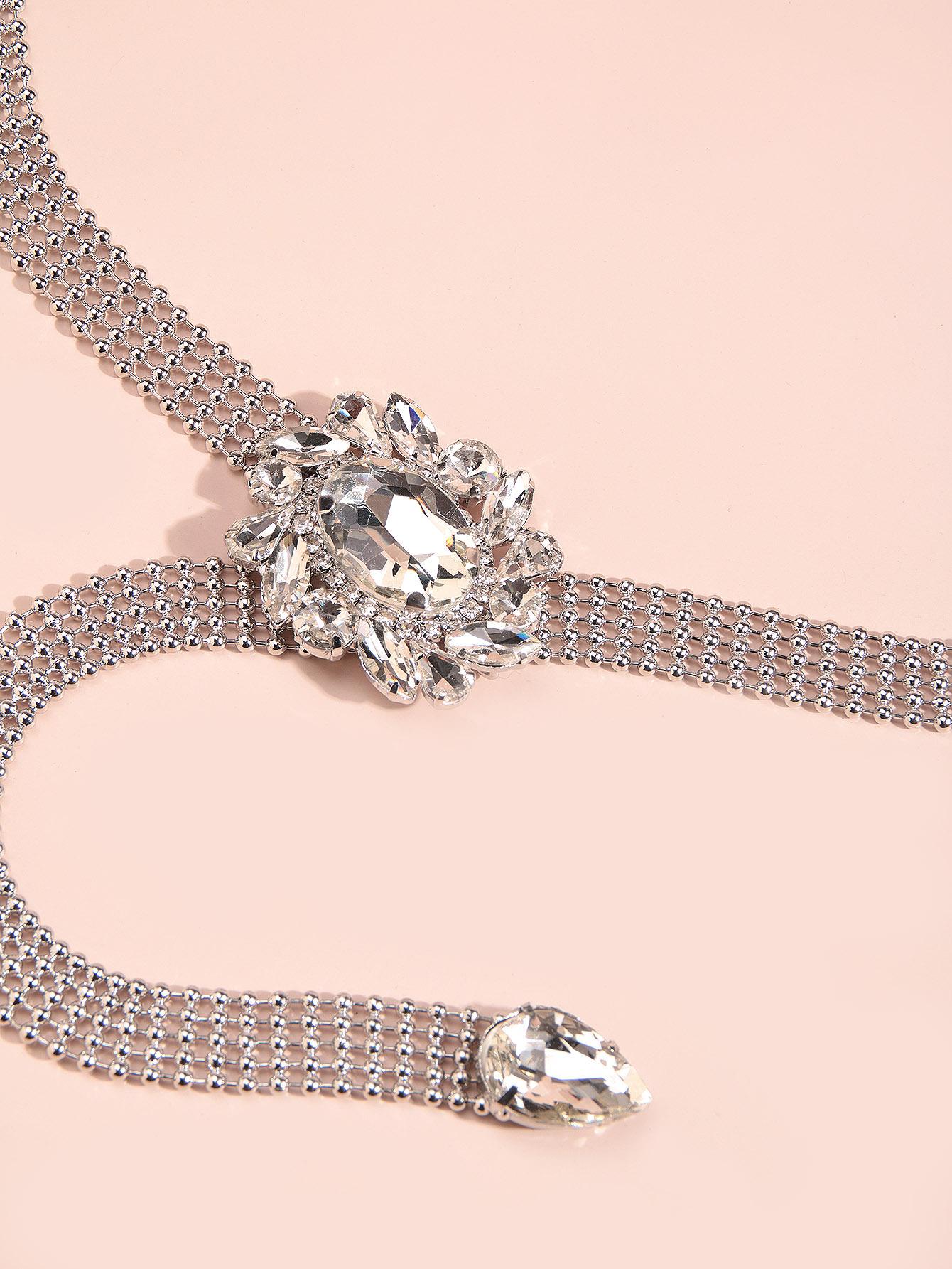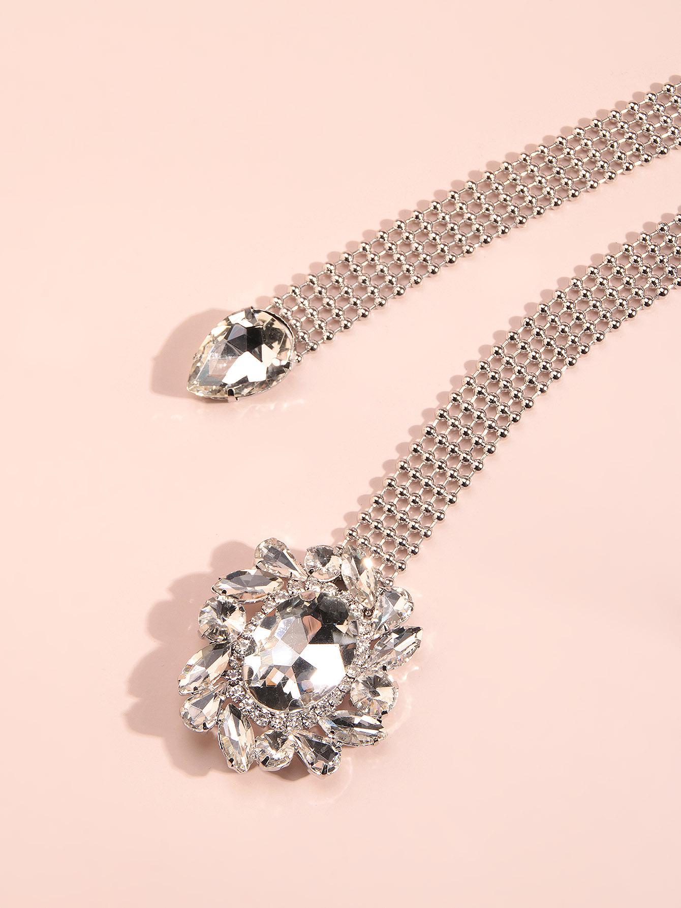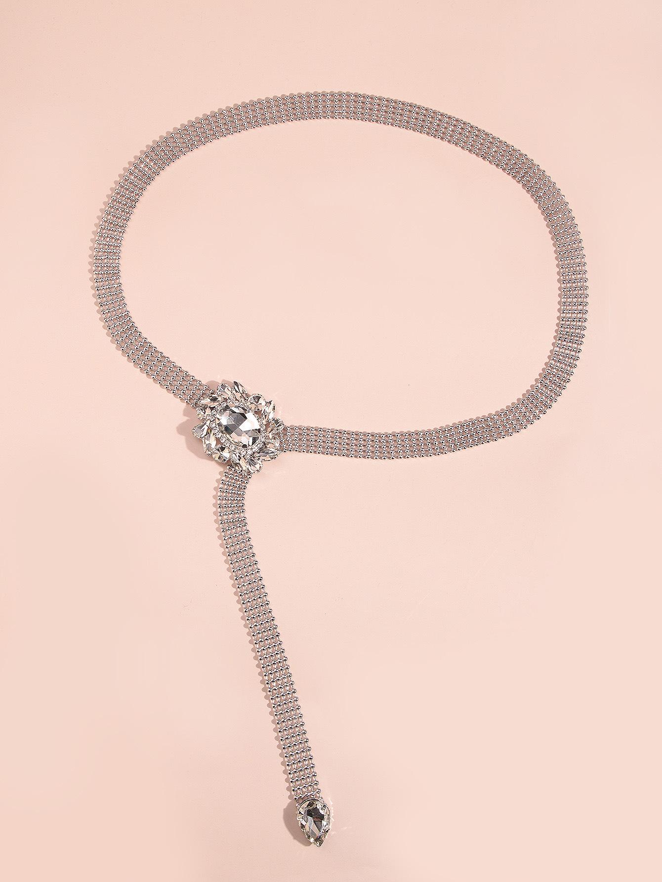Cross-border europeu e americano feminino flor diamante prata longa cintura corrente metal bonito moda ponto cinto fábrica vendas diretas