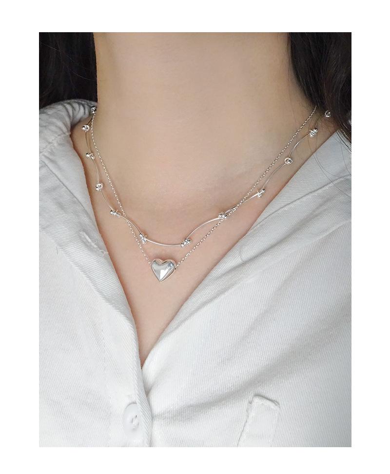 576 Estilo coreano INS nicho luz design de luxo versátil tridimensional bang coração colar de prata esterlina S925 cadeia de clavícula feminina