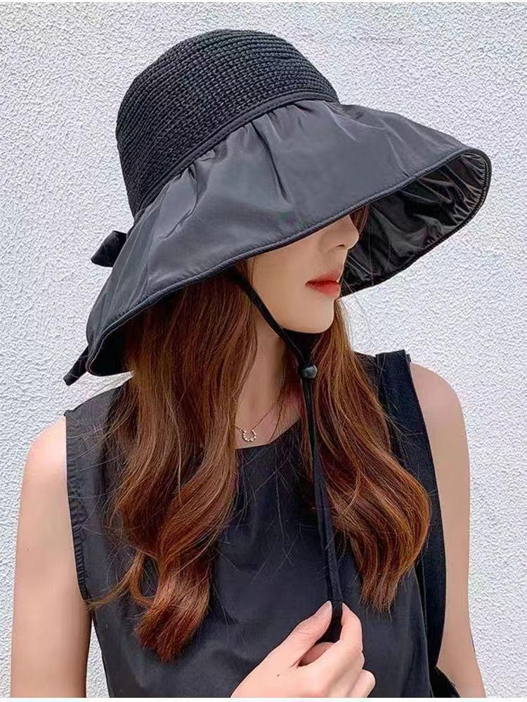 Verão preto plástico oco topo chapéu de pescador proteção uv grande borda dobrável chapéu de sol ao ar livre ciclismo chapéu para mulher