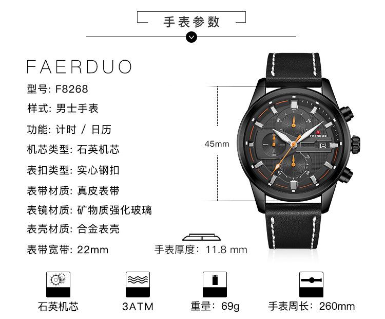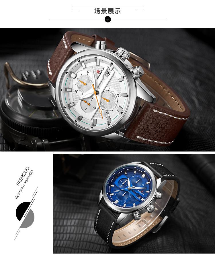 FAERUOU novo relógio de pulso masculino de personalidade luminosa com mostrador grande e calendário esportivo relógio de quartzo