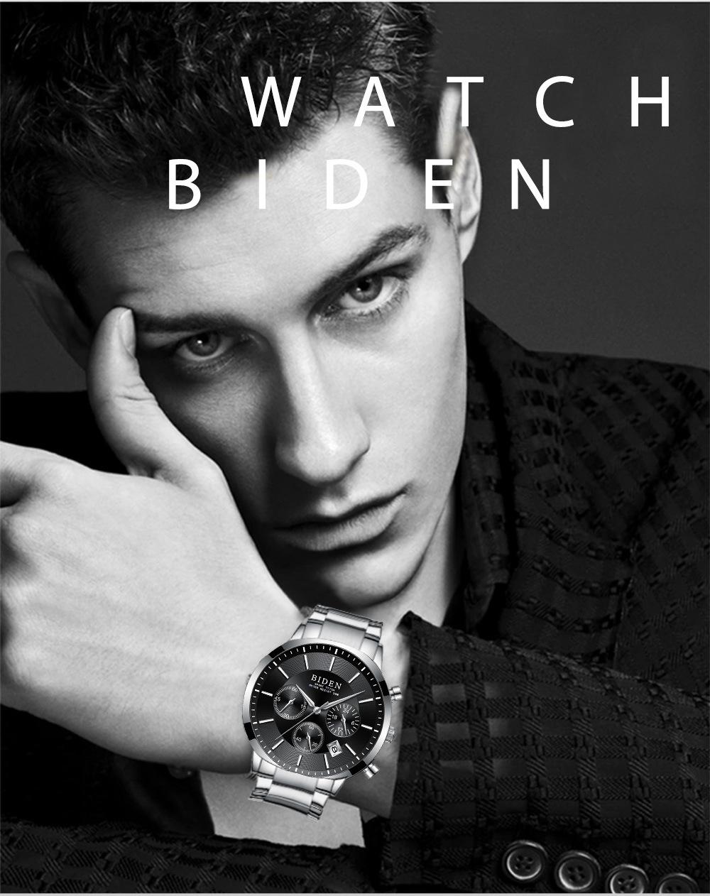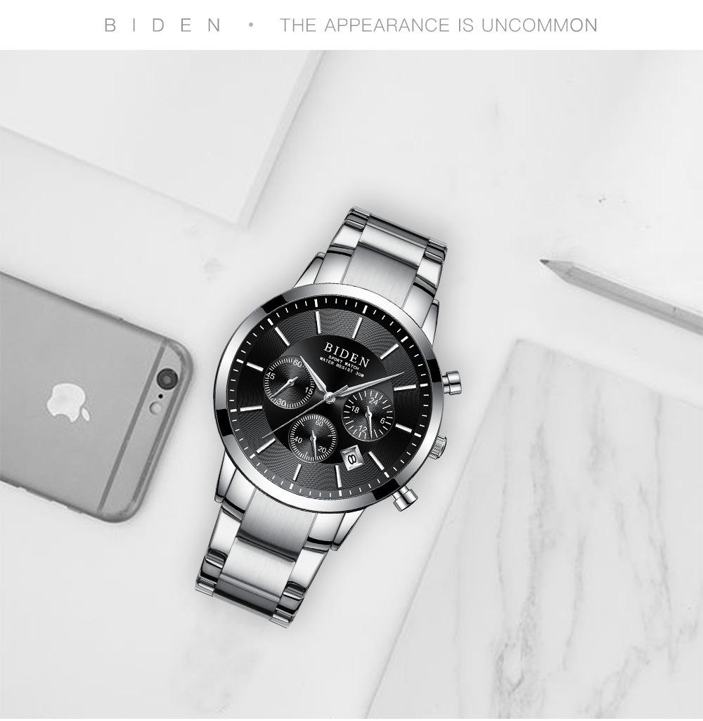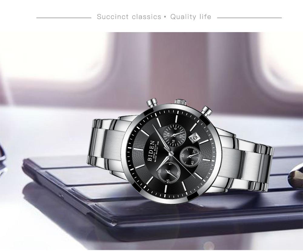 Biden negócios moda relógio à prova d'água pequeno três olhos multi-banda calendário função dial comércio exterior distribuição relógio masculino 0029