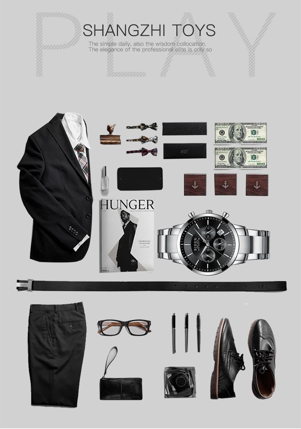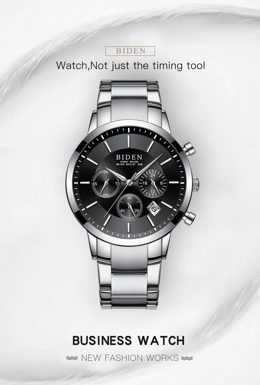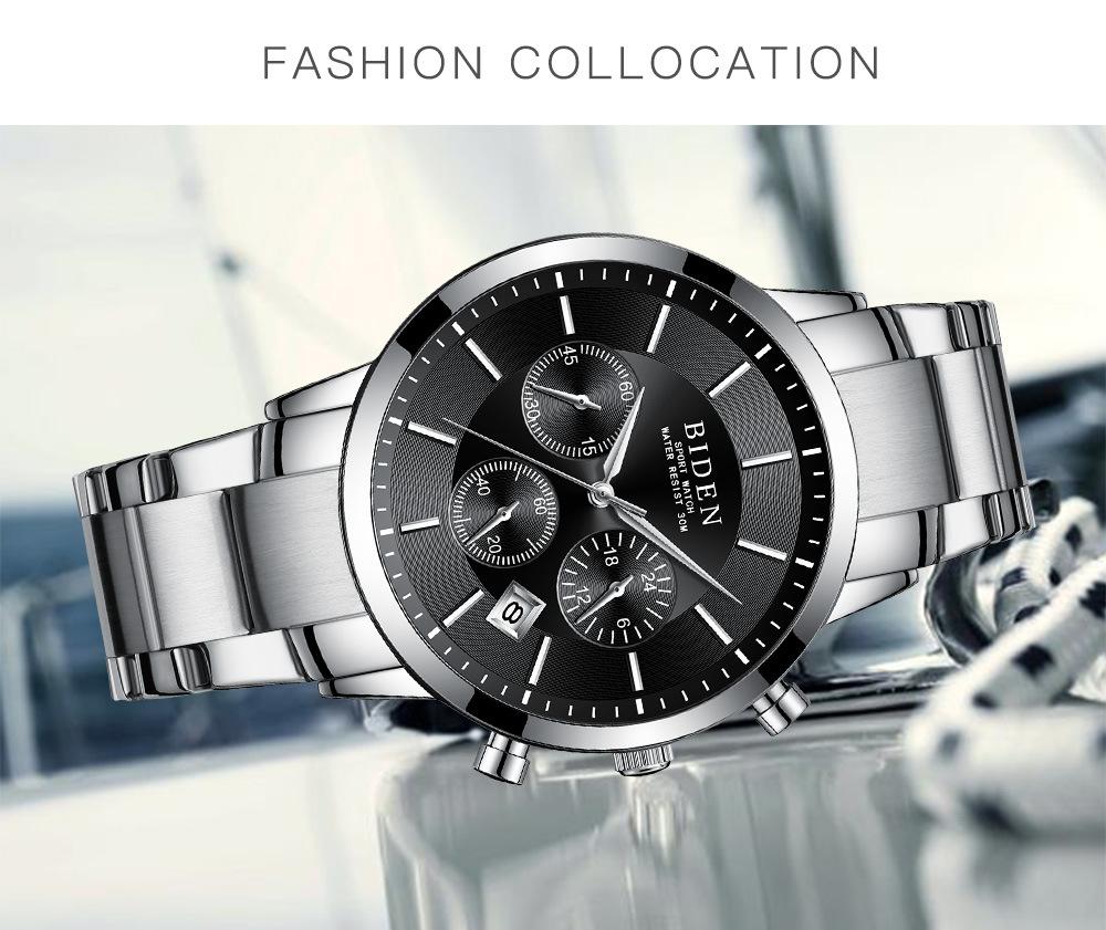 Biden negócios moda relógio à prova d'água pequeno três olhos multi-banda calendário função dial comércio exterior distribuição relógio masculino 0029