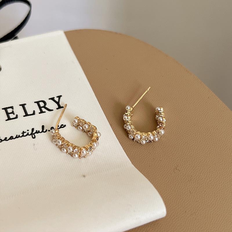 Compre Brincos de pérola em forma de c retrô francês para todos os jogos da moda 2023 novos brincos de alta qualidade de design de nicho moderno para mulheres no atacado no Joom.pro
