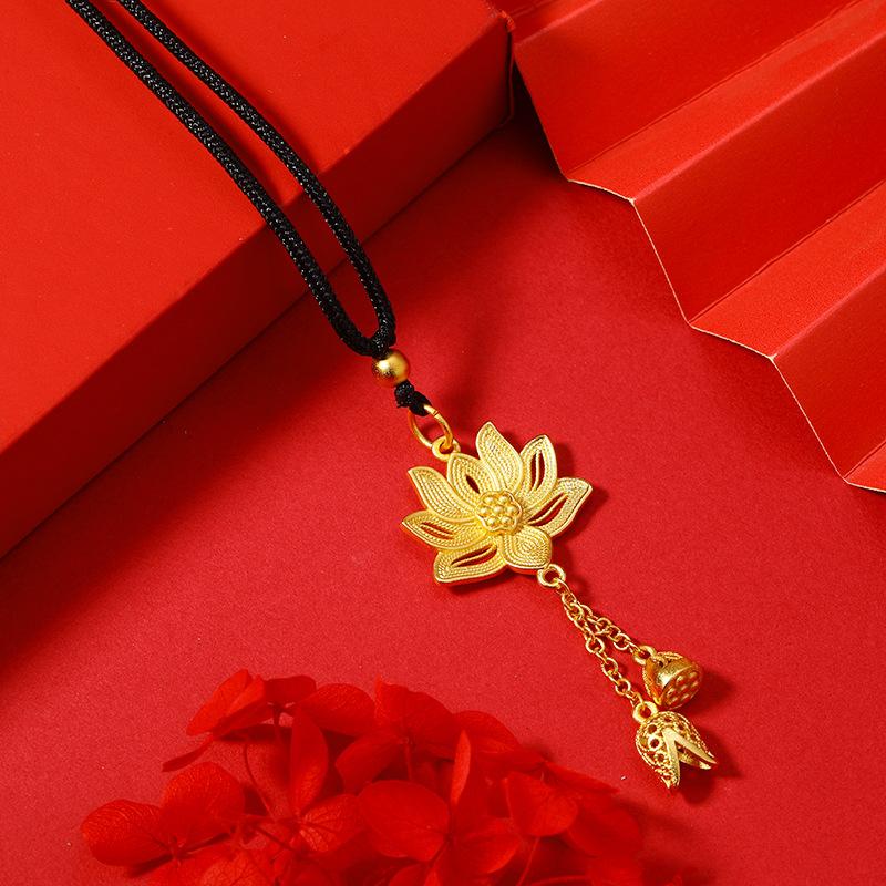 Moda europeia e americana temperamento simples corda corrente meninas ouro duplo pingente contas de lótus jóias populares pingente de corda