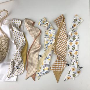 | |  | | | | Lenço de seda pequeno, branco e amarelo, novo estilo na primavera e no verão, faixa de cabelo de fita fina e estreita, elástico de cabelo, bolsa, lenço longo multifuncional | | | | | |