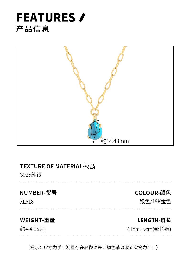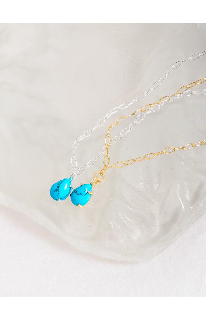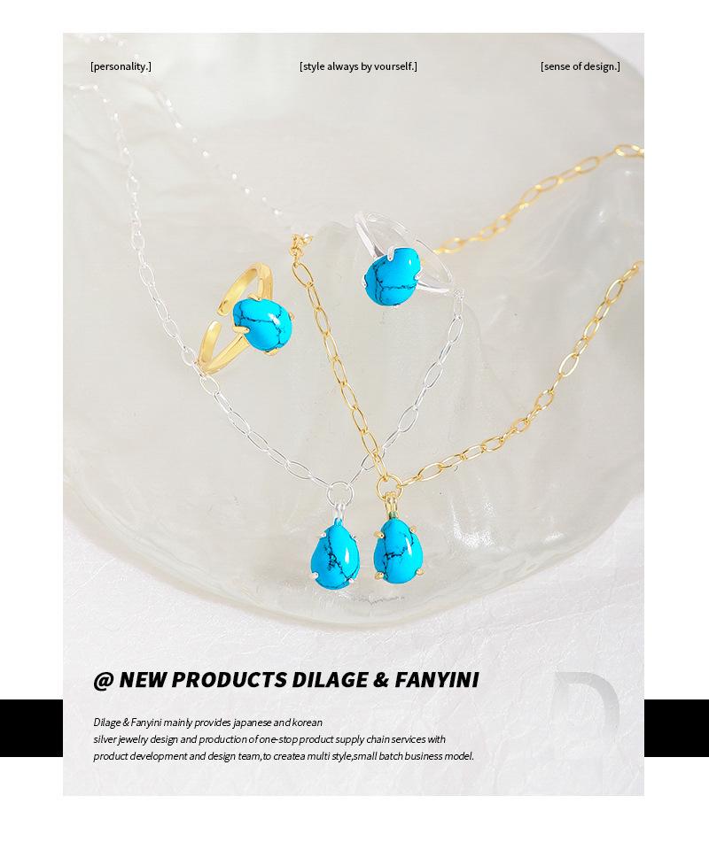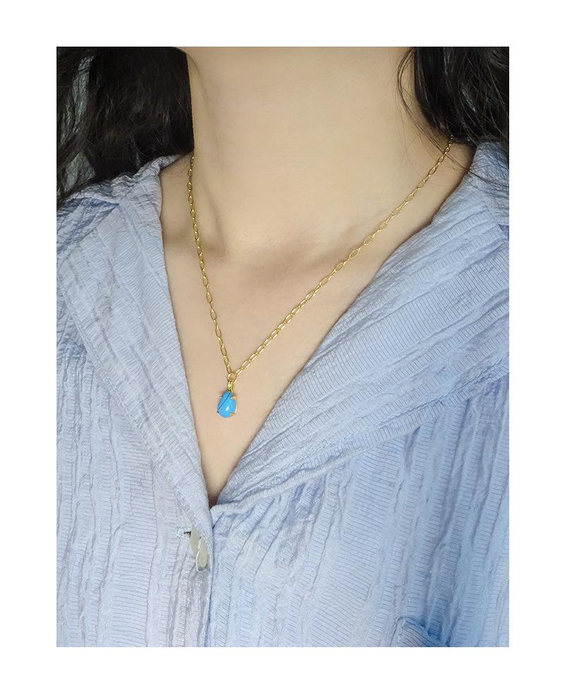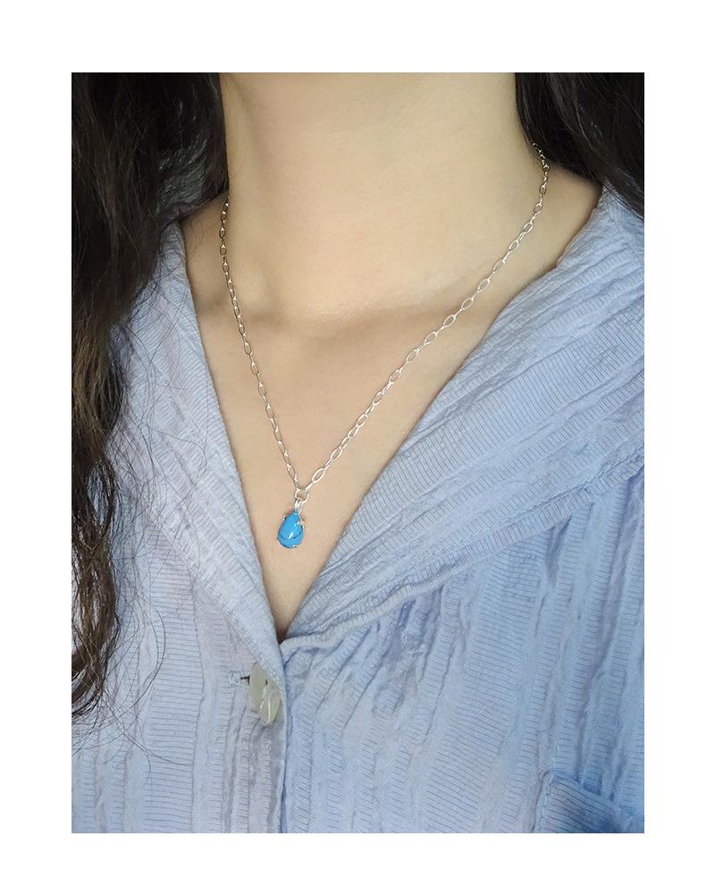 518 Estilo coreano INS nicho diseño de lujo ligero versátil garra incrustada azul turquesa collar clavícula plata esterlina S925 textura para mujer