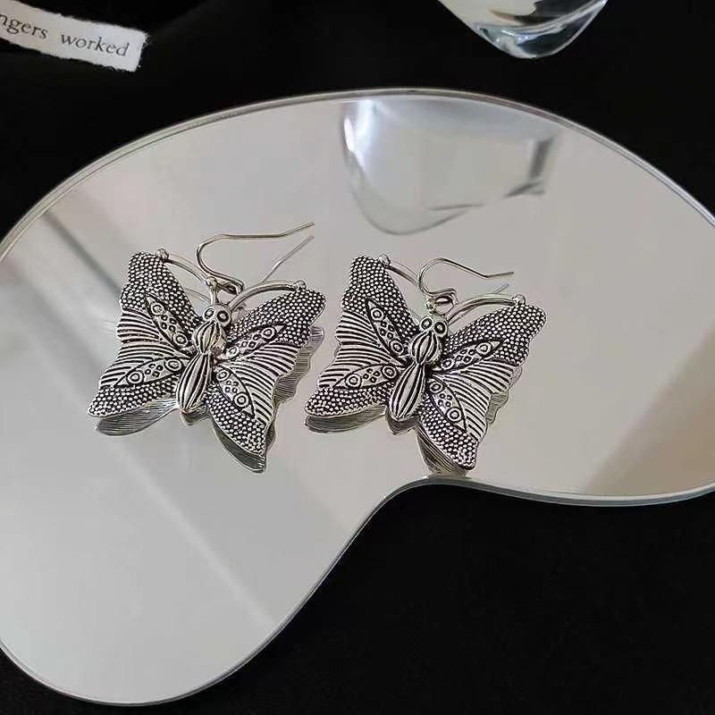 Coreano Antigo Prata Borboleta Brincos Simples Design Personalizado Doce Fresco Vento Frio Orelha Gancho Nicho Nova Moda Brincos para Mulheres