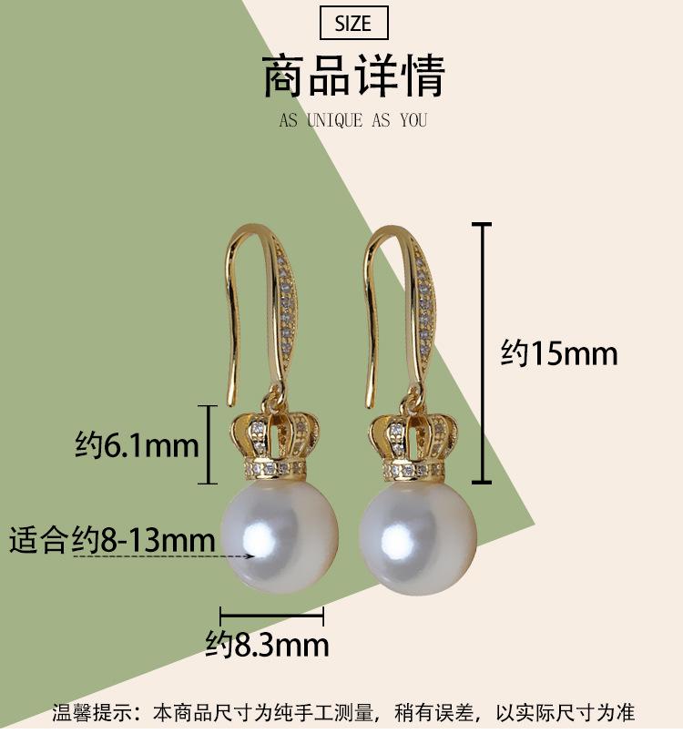 El ancho de la corona pequeña es de aproximadamente 8.3 mm, la altura es de aproximadamente 6.1 mm, y la altura total del gancho para la oreja incluyendo el colgante es de aproximadamente 15 mm. Es adecuado para perlas redondas de 8-13 mm o cuentas redondas cortas.