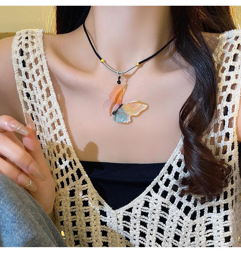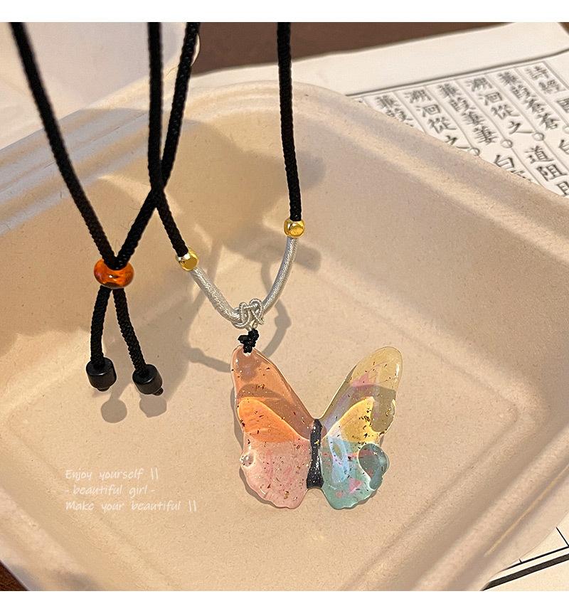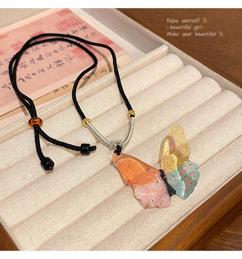Novo colar chinês zen étnico borboleta feminino luz luxo nicho cor contas clavícula corrente cyber celebridade colar corrente atacado