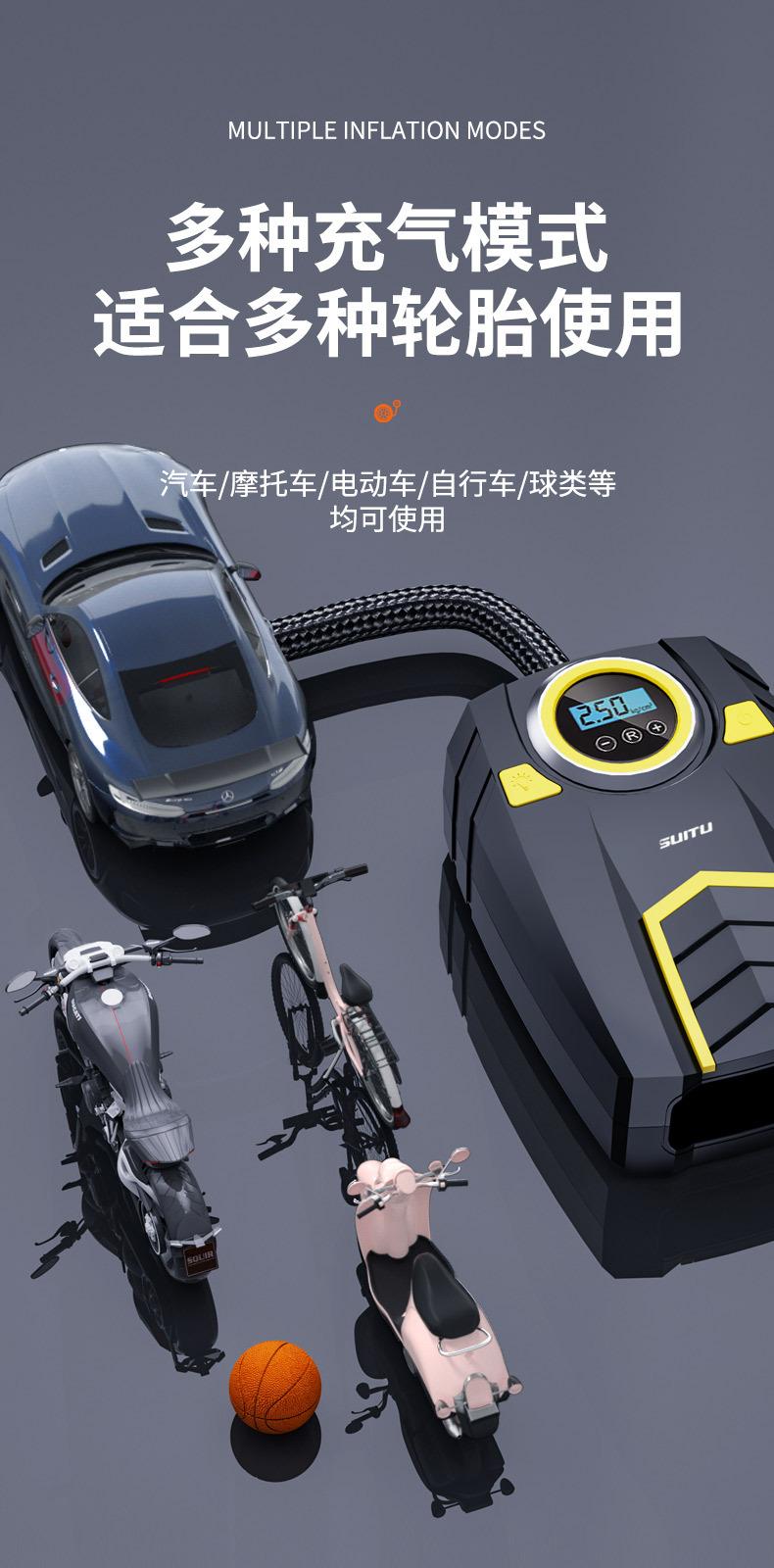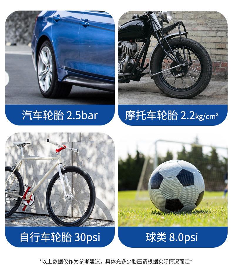 5, equipado com um conjunto completo de bicos de inflação, pode ser usado para encher pneus, barcos de borracha, almofadas de ar, brinquedos infláveis, bolas e muitas outras finalidades.