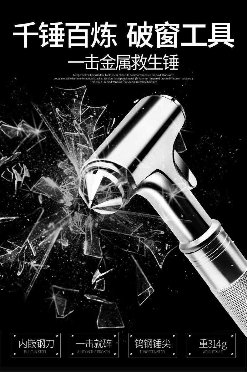 Rundong martelo de segurança de carro de metal completo prático para fuga de emergência de incêndio martelo salva-vidas quebra-janela R-7116