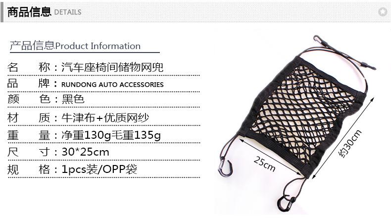 5.Bolso de rede de armazenamento especial entre os assentos, design de camada dupla, expande o espaço no carro com forte força de tração
