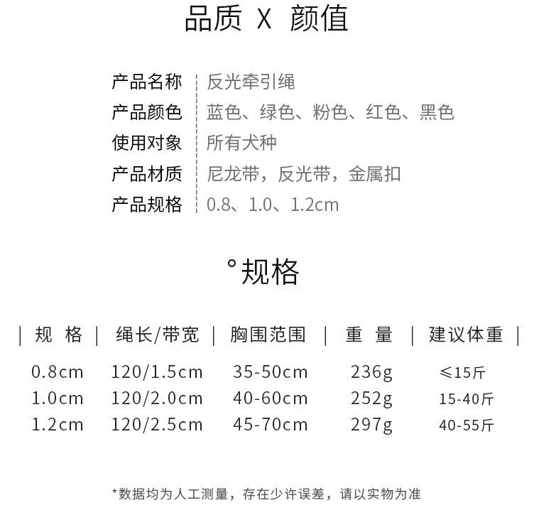 Arnés talla mediana, grosor de la cuerda 1.0cm, ancho de la cinta 2.0cm, peso 188g, circunferencia de pecho 44-59cm, adecuado para perros pequeños y medianos