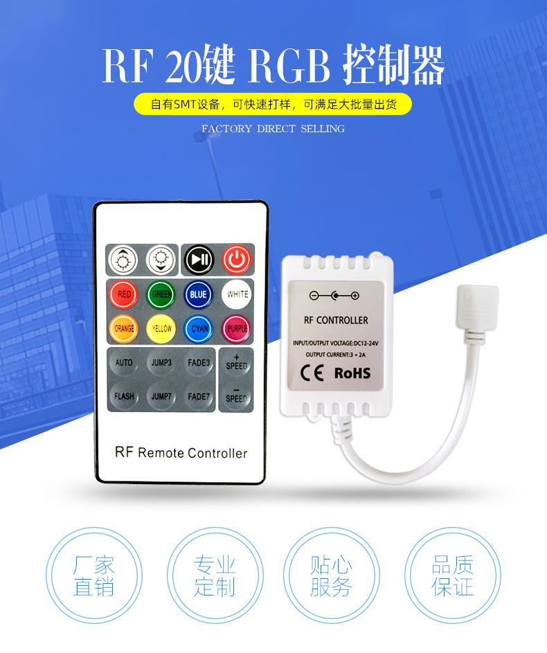 Controlador RF de 20 teclas barra de luz barra de luz colorido control remoto por radiofrecuencia controlador inalámbrico 12-24V directo de fábrica