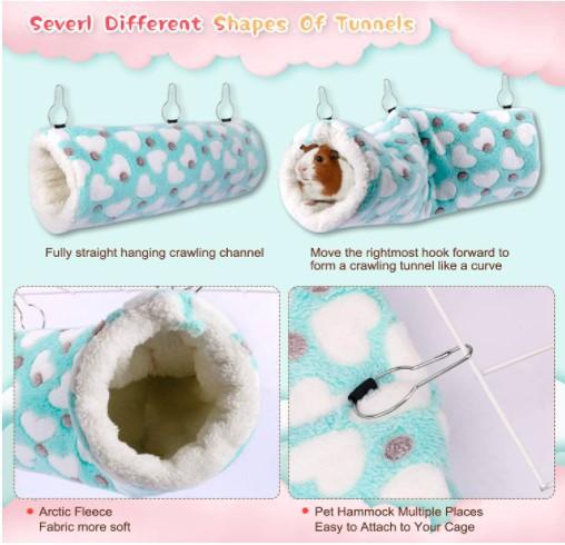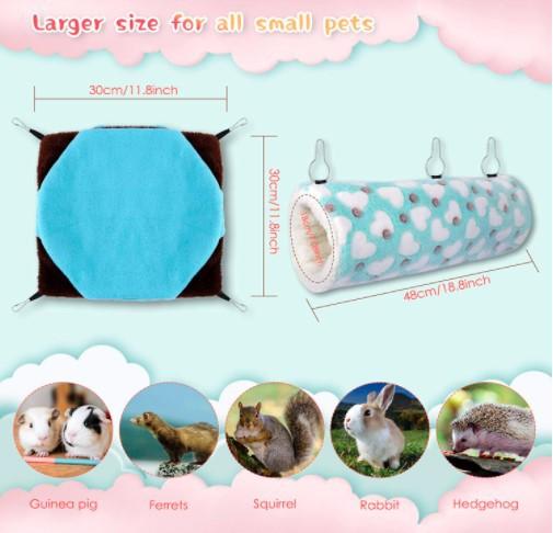A rede para pequenos animais mede 11,8 polegadas * 11,8 polegadas (cerca de 30 cm) * 11,8 polegadas (cerca de 30 cm) com um diâmetro de 6 polegadas (cerca de 15 cm). O túnel de suspensão para porquinhos-da-índia tem 18,75 polegadas (cerca de 47,8 cm) de comprimento com um diâmetro de 6,3 polegadas (cerca de 16 cm)