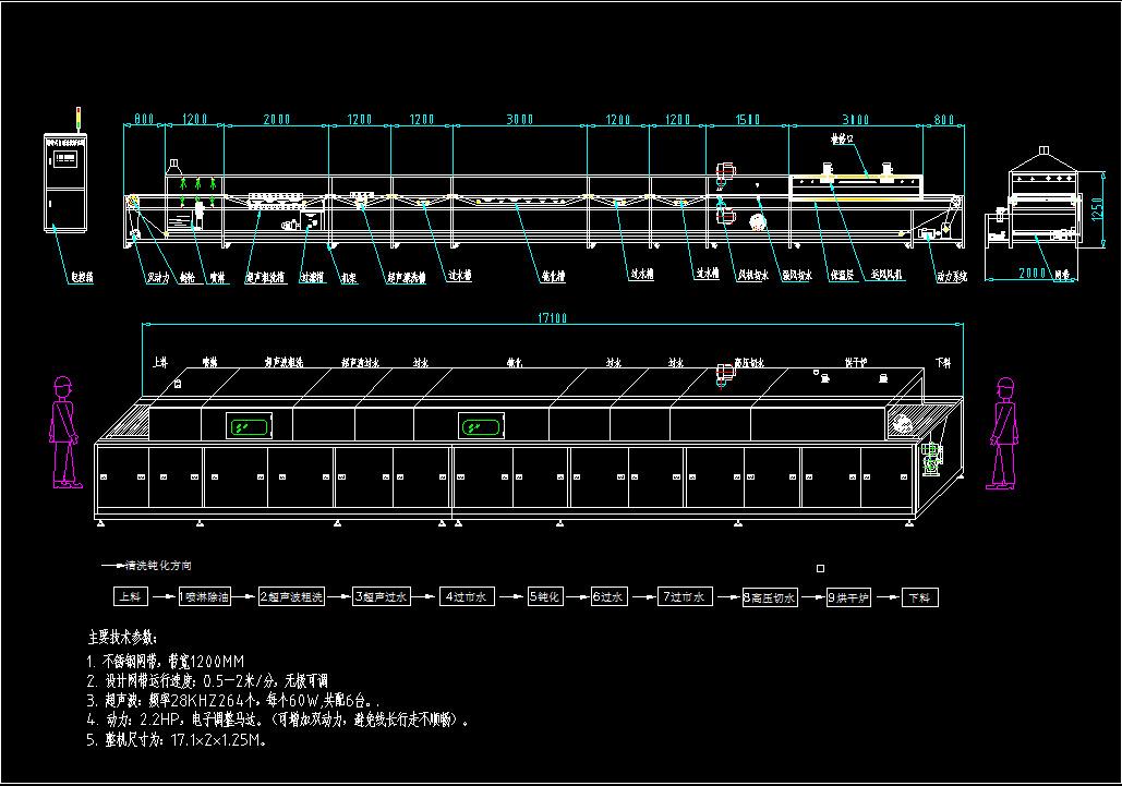 9.1 Fluxo do processo: carregamento → desengorduramento por pulverização → limpeza ultrassônica → lavagem ultrassônica com água → lavagem com água → passivação → lavagem com água → lavagem com água → corte com água por ventilador (ou ar comprimido) → secagem → descarregamento