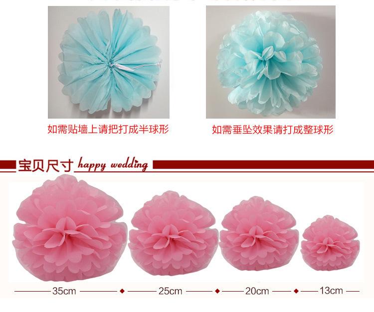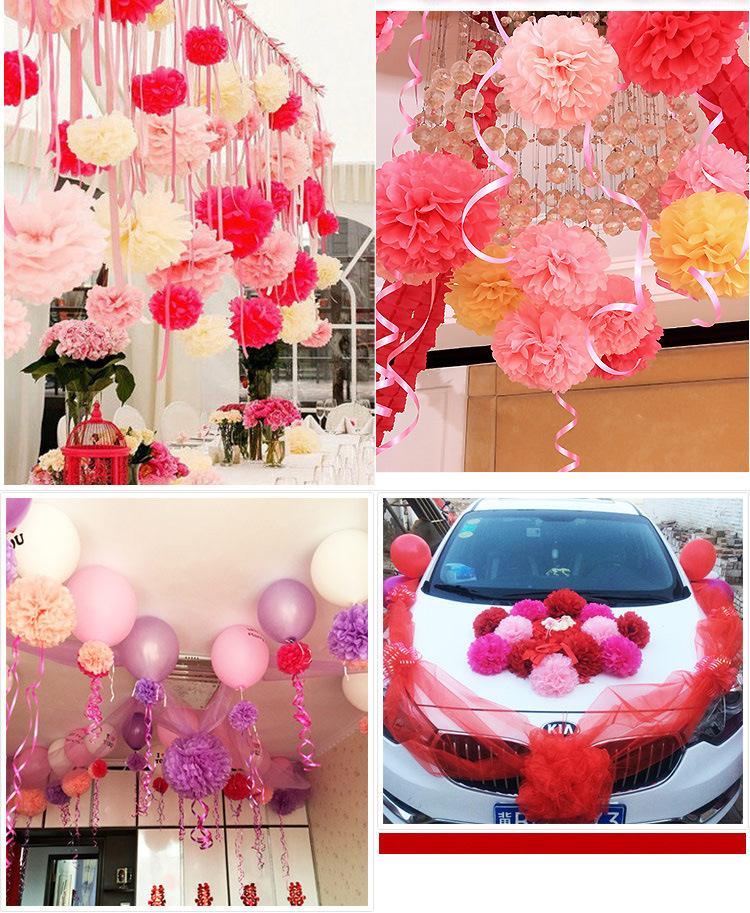 Usos: El Pom Pom de Papel de Seda es una decoración popular en Europa y América en los últimos años. El producto es fresco y elegante, y respetuoso con el medio ambiente. Se puede usar para habitaciones de boda, habitaciones de niños, fiestas de cumpleaños, decoraciones de ventanas, celebraciones de festivales, agencias de automóviles 4S, etc.