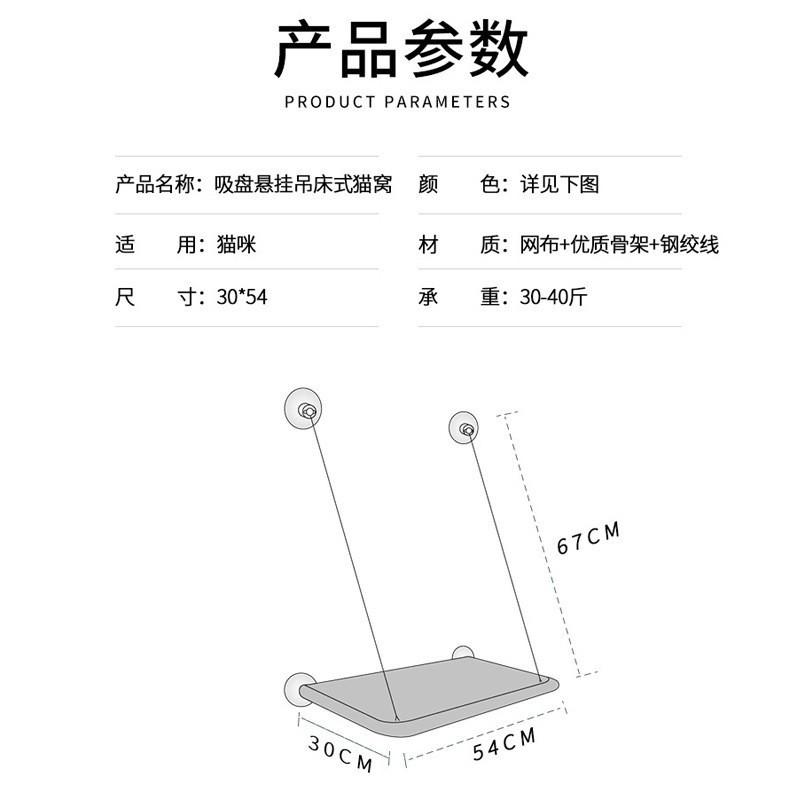 Rede para gatos com ventosaTecido Oxford 600D sem odores