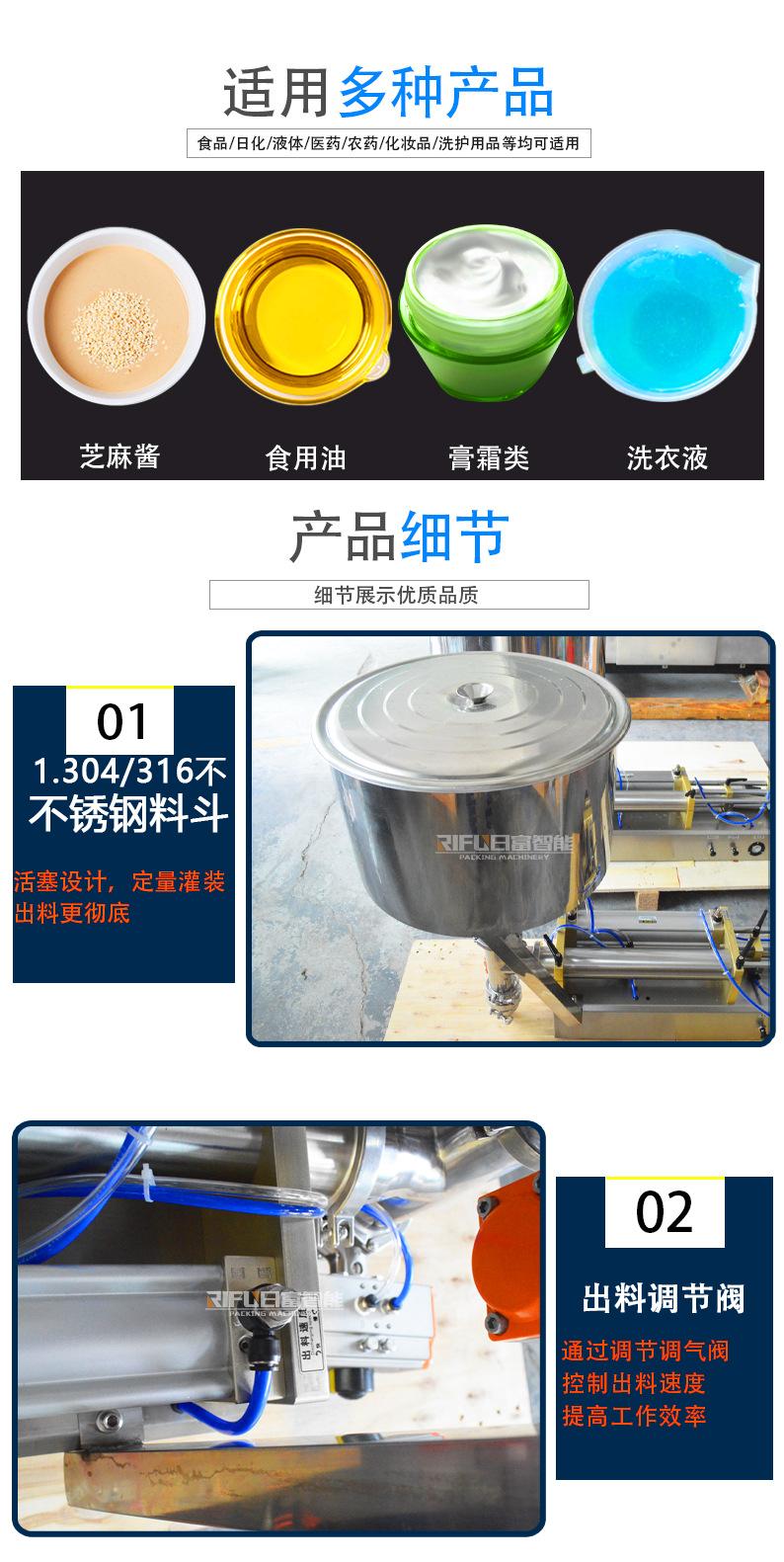 Máquina de envase de pasta e molho, máquina de envase de líquidos (envase de materiais com boa fluidez, como água mineral, óleo essencial, suco, bebida, chá de ervas, licor, vinagre branco, molho de soja, bem como enchimento de materiais viscosos, como molho de pimenta , molho de pimenta picada, geléia, pasta, mel, xarope, xampu, sabonete, detergente, óleo de motor, óleo lubrificante, etc.)