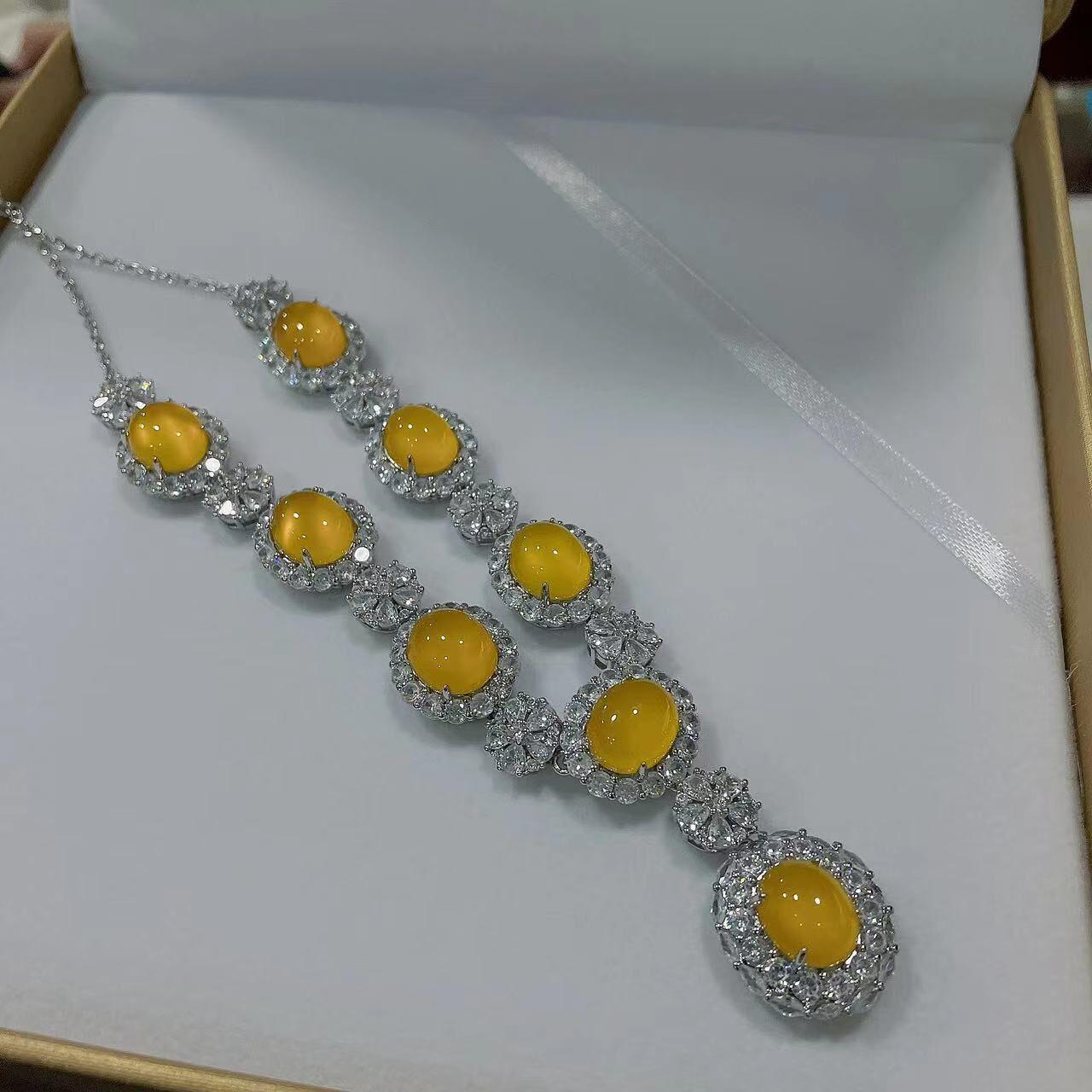 【Nome do bebê】Colar de calcedônia requintado
