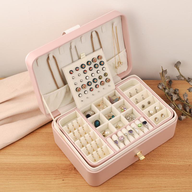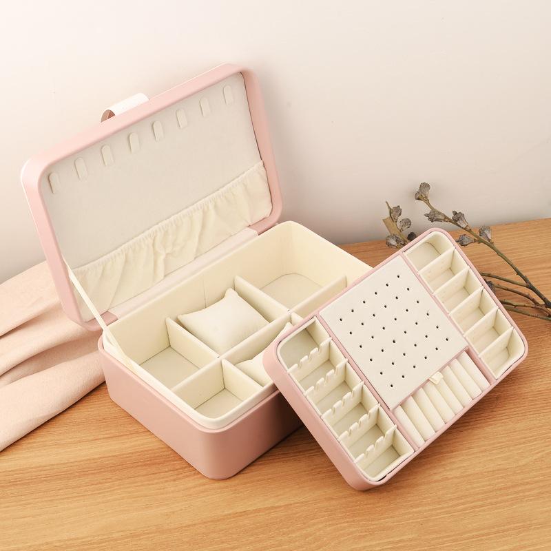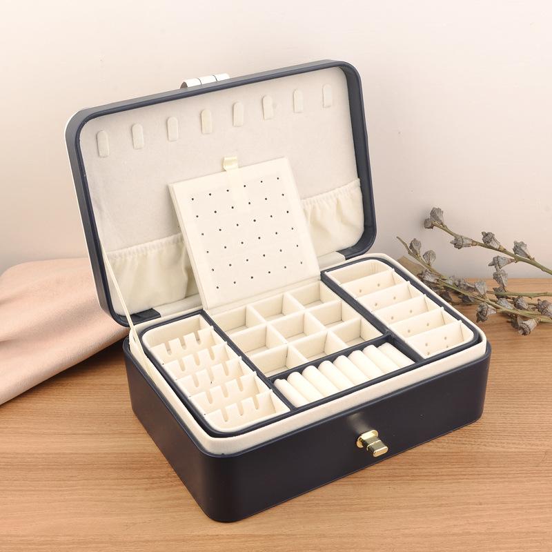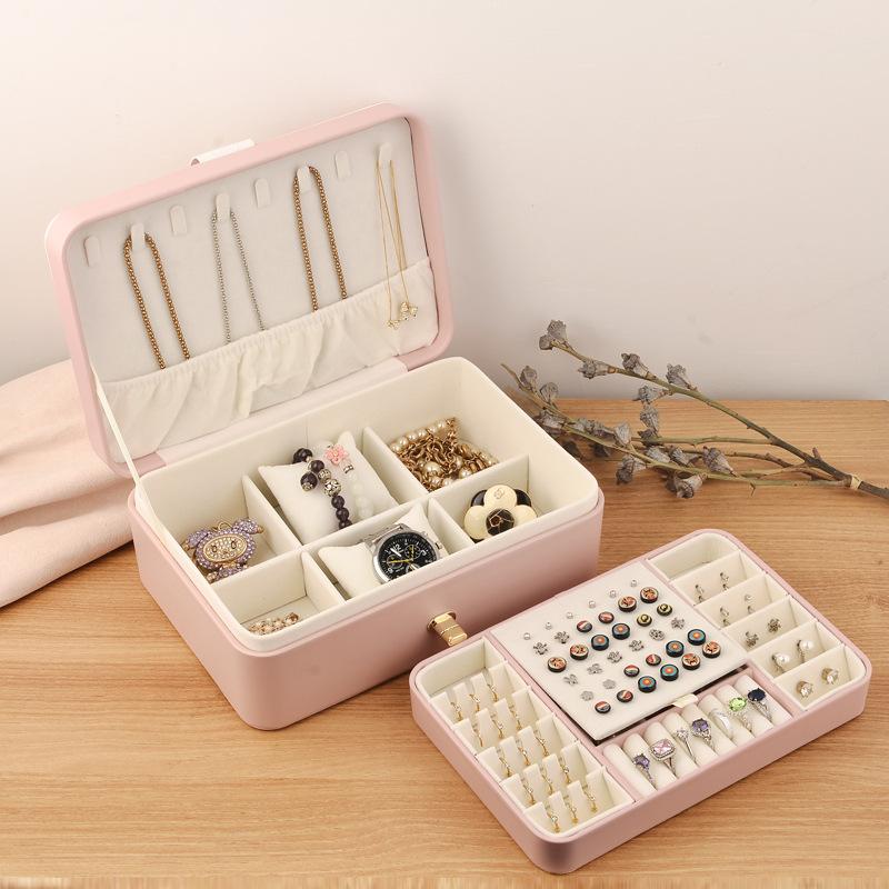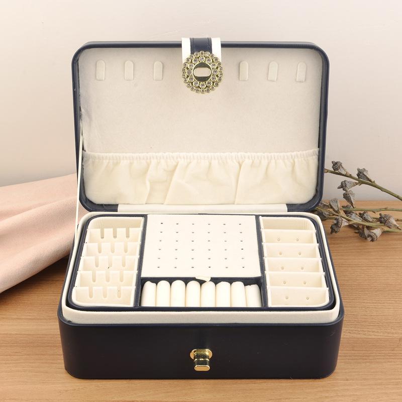 Nombre del producto: Caja de almacenamiento de joyería de doble capa con hebilla redonda