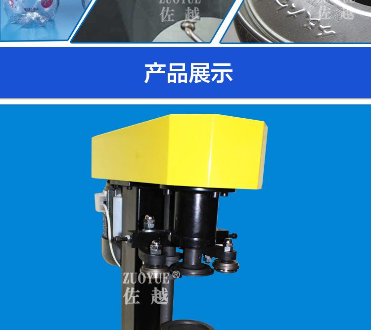 Características de rendimiento: Puede cubrir dispositivo de control de juntas: Cuando entra un cuerpo de lata, la tapa de lata se asigna en consecuencia, y ninguna lata queda sin tapa. "Sellado sin tapa": Cuando un cuerpo de lata al que no se le ha asignado una tapa de lata entra por error, también puede pasar suavemente a través del mecanismo de sellado, de modo que el cuerpo de la lata no muerda la matriz del cabezal de presión y dañe las piezas del mecanismo de sellado. El motor de la máquina principal y de la cinta transportadora tienen regulación de velocidad continua independiente, estructura simple, fácil operación y mantenimiento. La cubierta exterior y los componentes principales están hechos de acero inoxidable 304 para cumplir con los requisitos de higiene de alimentos y medicamentos.