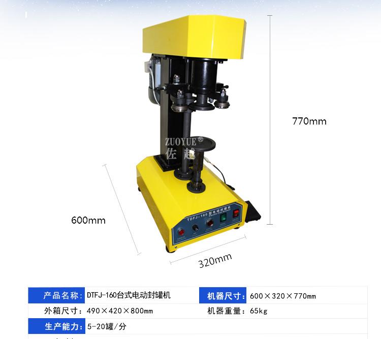 Modelo: La máquina selladora de latas eléctrica DGT es adecuada para sellar tapas de hojalata, tapas de aluminio y tapas de latas de varias latas redondas de hierro, vidrio, plástico, PET, latas de aluminio, latas de papel, etc. Tiene calidad confiable, operación simple y ligera, y es un equipo ideal para la industria de alimentos y bebidas. Puede sellar latas de diferentes diámetros reemplazando una pequeña cantidad de accesorios. La parte sellada es lisa, sin rebabas, hermética al agua y hermética al aire.