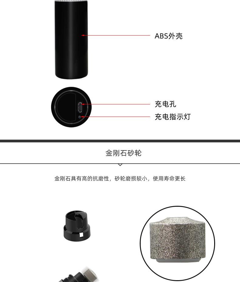 2. Cabeça de retificação de diamante profissional, mais delicada, mais resistente ao desgaste e a cabeça de retificação pode ser facilmente substituída.