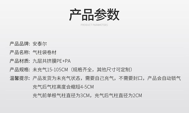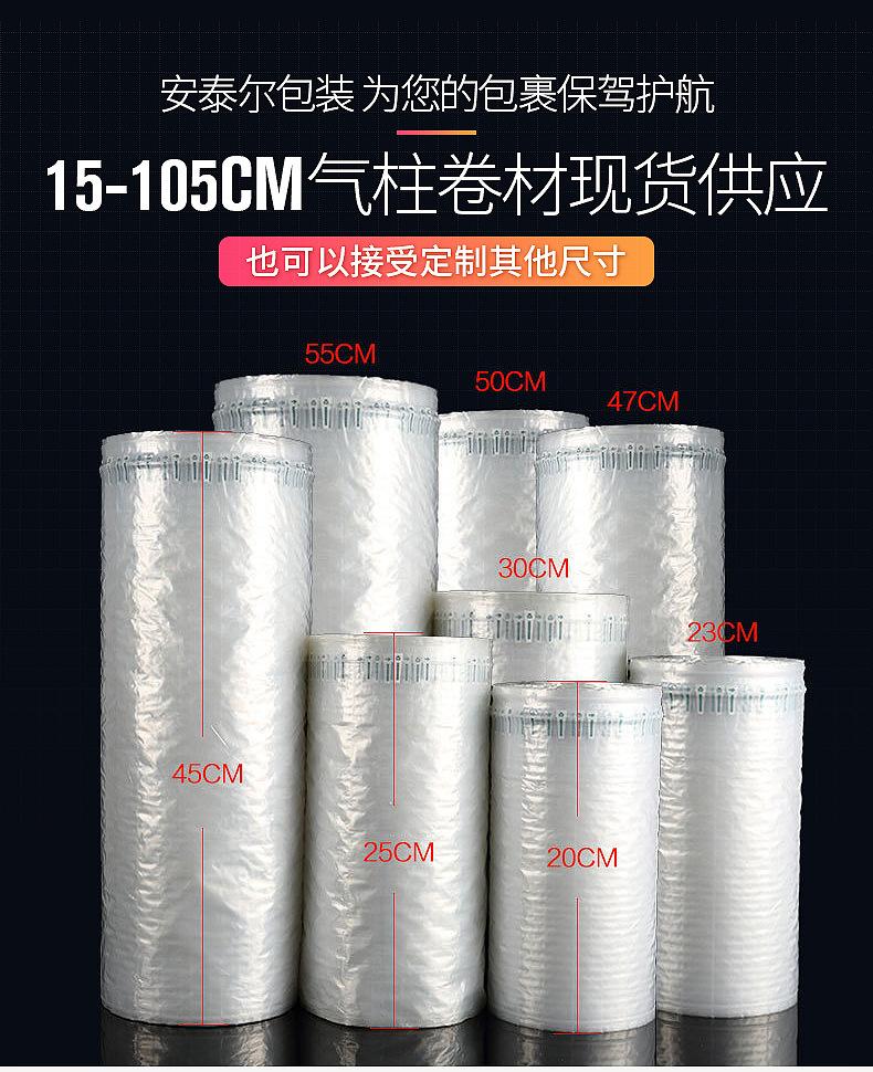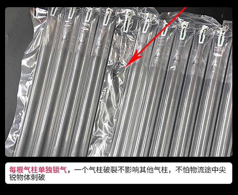 Tecnologia de fabricação de airbags:A bolsa de coluna de ar é feita de composto coextrudado de nylon PA PE. Diferente do filme de sete camadas usado no mercado, nossas bolsas de coluna de ar são feitas de filme coextrudado de nove camadas de alta qualidade. É feito por selagem a quente com uma máquina de fazer bolsas de coluna de ar de amortecimento. O conteúdo de nylon determina o alongamento e a resistência à compressão da bolsa de coluna de ar.