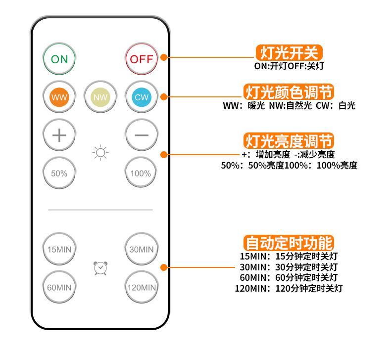 4. Temperatura de color de la luz: 6500K/luz blanca 4500K/luz natural 3000K/luz cálida