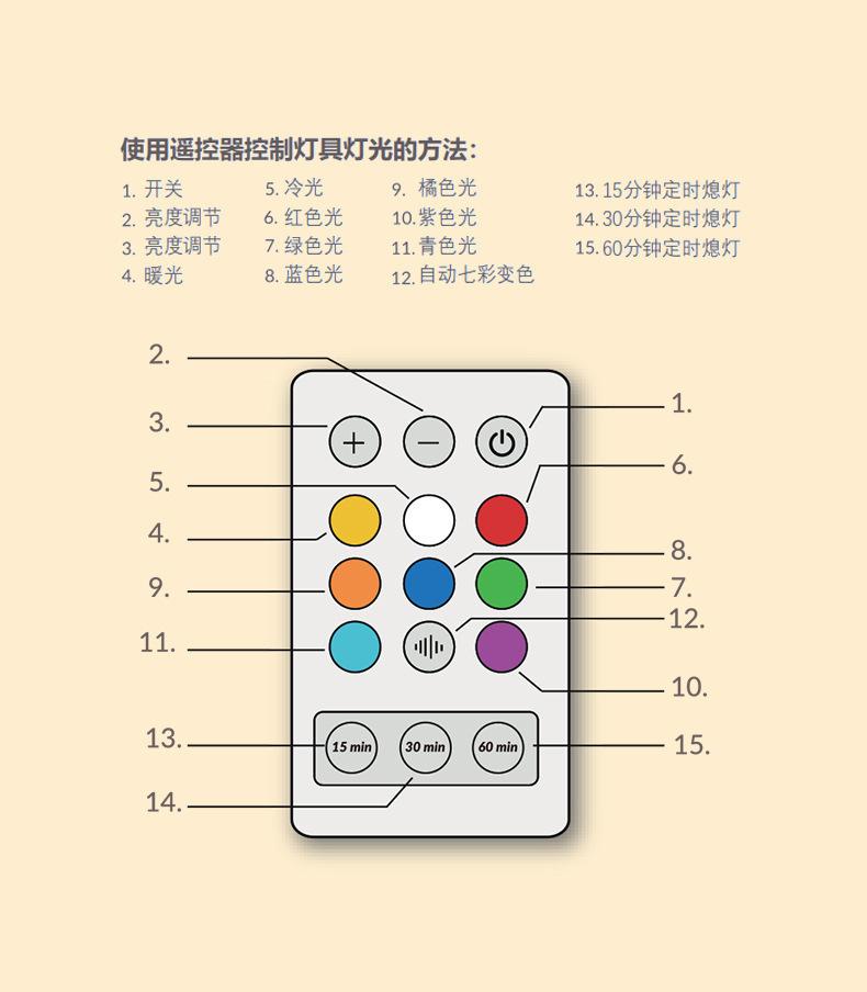 ┃Função do produto: escurecimento contínuo branco quente, controle remoto colorido