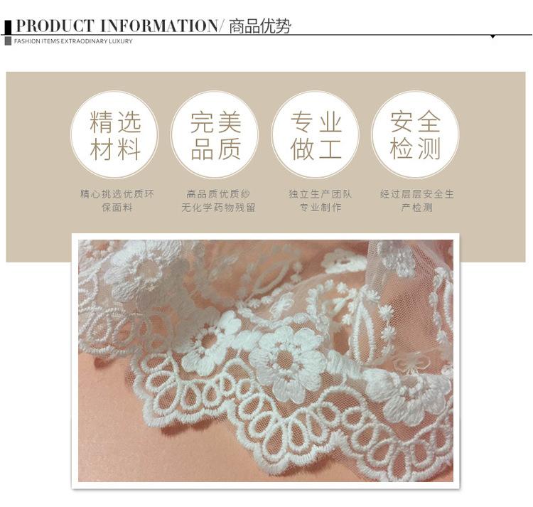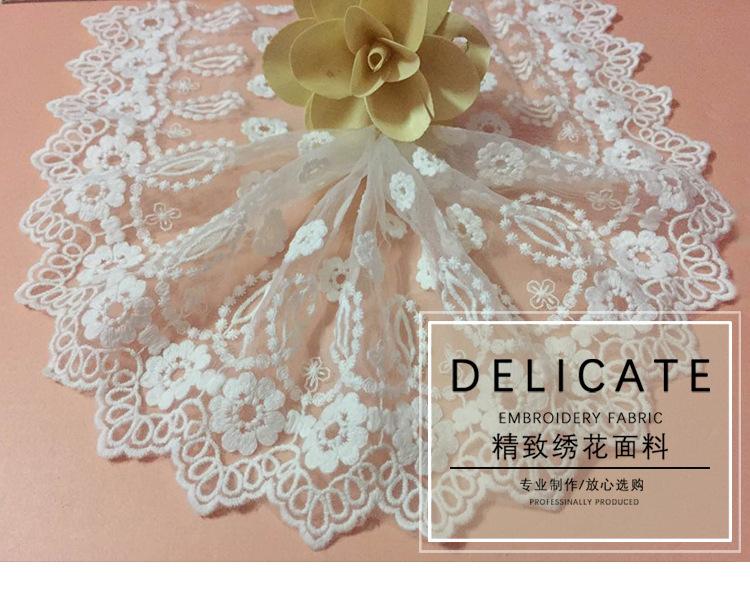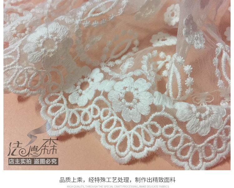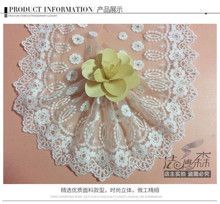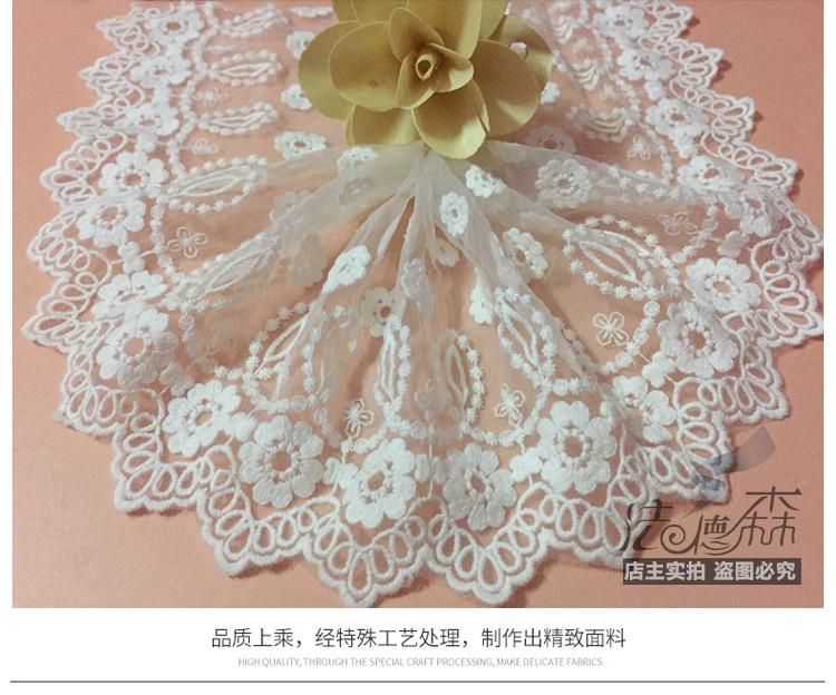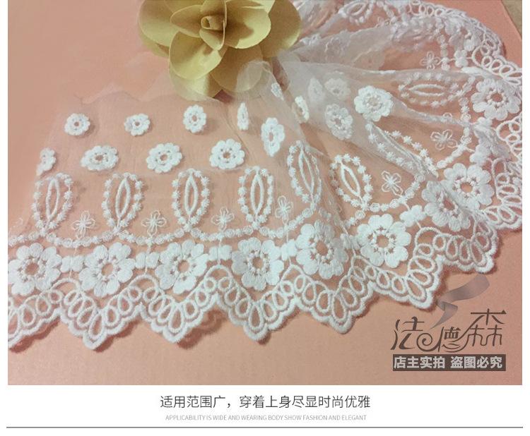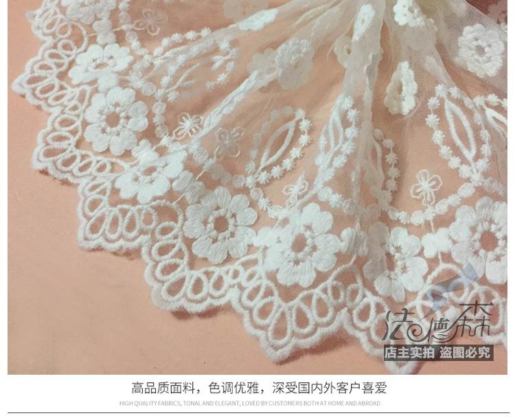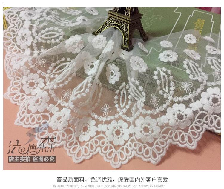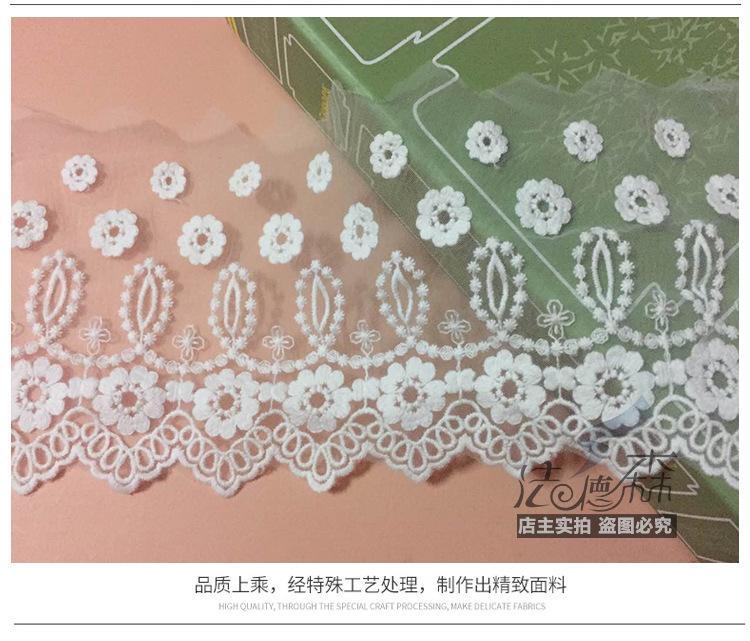 Debido a los diferentes métodos de medición y a la contracción del teñido, habrá cierta diferencia de espacio en el encaje. Este encaje mide 20 yardas, el blanco mide aproximadamente 19.5 yardas y el negro mide aproximadamente 19 yardas. Se vende por 20 yardas. Si le importa, tenga cuidado al comprar.