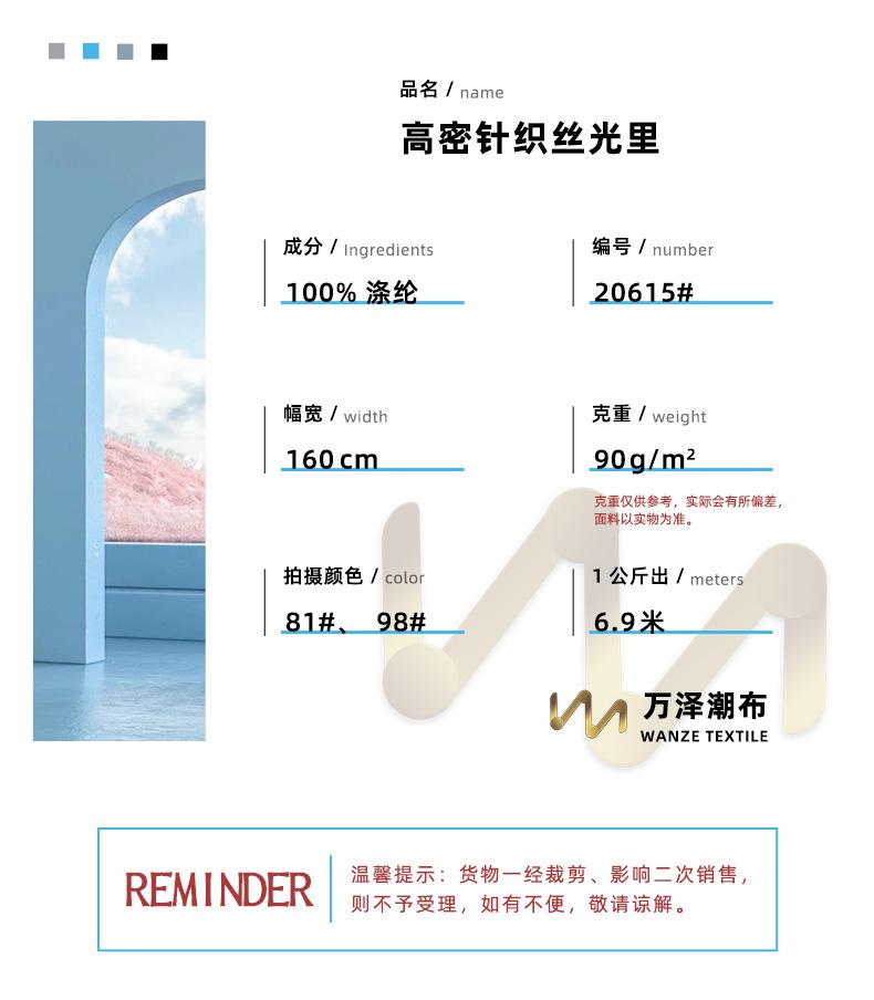Em estoque de malha de alta densidade mercerizado forro 90g macio e liso forro de roupas de malha saco forro tecido
