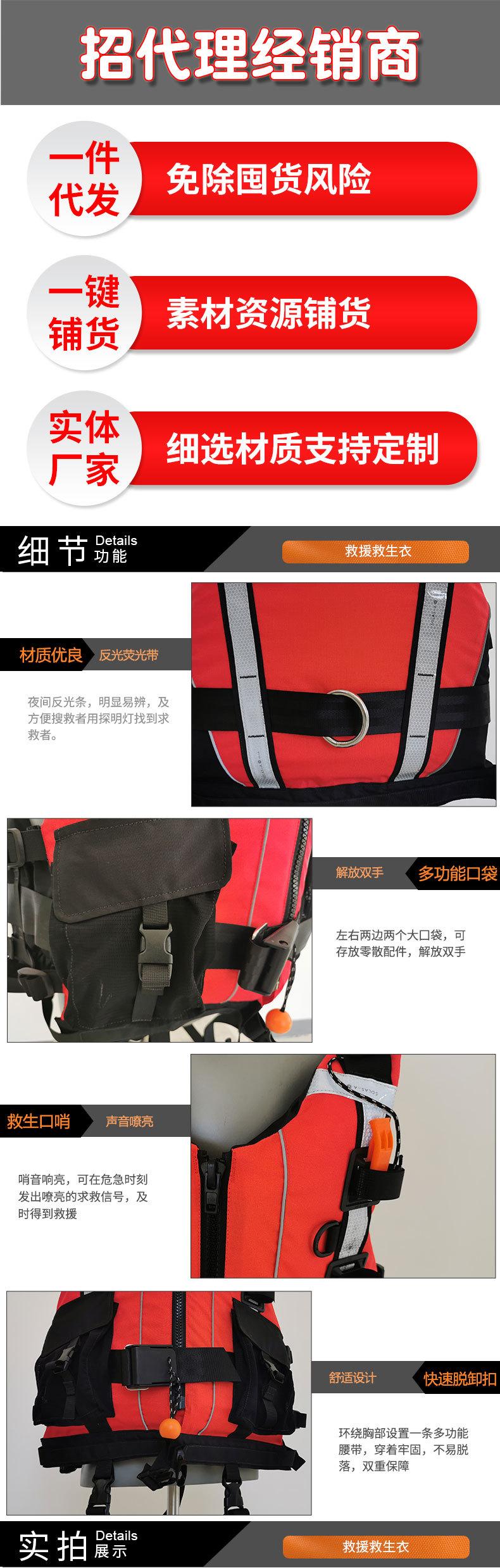 2.Este produto é um colete salva-vidas de resgate de corredeiras, que foi cuidadosamente projetado para basicamente lidar com todas as condições da superfície da água;