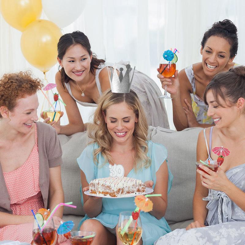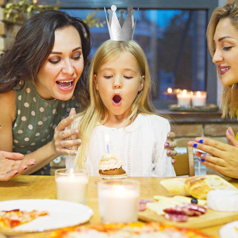 Chapéu Coroa de Festa de Aniversário com Filme de Glitter Príncipe Princesa Festa Celebração Suprimentos para Fantasia Chapéu de Aniversário de Glitter em PVC Chapéu Adereços de Cabine de Fotos para Festa de Despedida de Solteira Coroa Infantil Conjunto de 12 Peças Conjunto de 6 Peças
