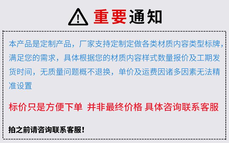 Informações de compras: Os fabricantes podem personalizar vários tipos de sinais refletivos de alumínio, sinais impressos em UV, sinais de corrosão, sinais de PVC, sinais de válvula, sinais de limite de tráfego/velocidade, sinais de energia, sinais de fogo, sinais de titânio, sinais de placa de duas cores, sinais de sequência de fase , sinais de número de pólo, sinais de esmalte, sinais de sistema e outros tipos de sinais. Podemos enviar uma peça por vez e emitir faturas para atender às suas necessidades. Se você tiver outros requisitos, entre em contato com o atendimento ao cliente!