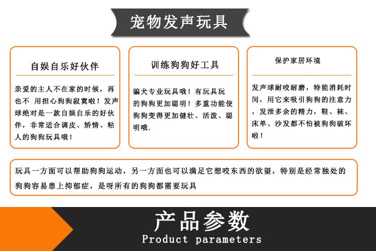 [Introdução do produto]: Feito de material resistente a mordidas, pode tranquilizar o dono. Há um pequeno sino nele, que pode fazer o cão se divertir. Brinquedos de bola são adequados para filhotes. Enquanto brinca, o cão pode remover a sujeira dos dentes do cão e mantê-los limpos.