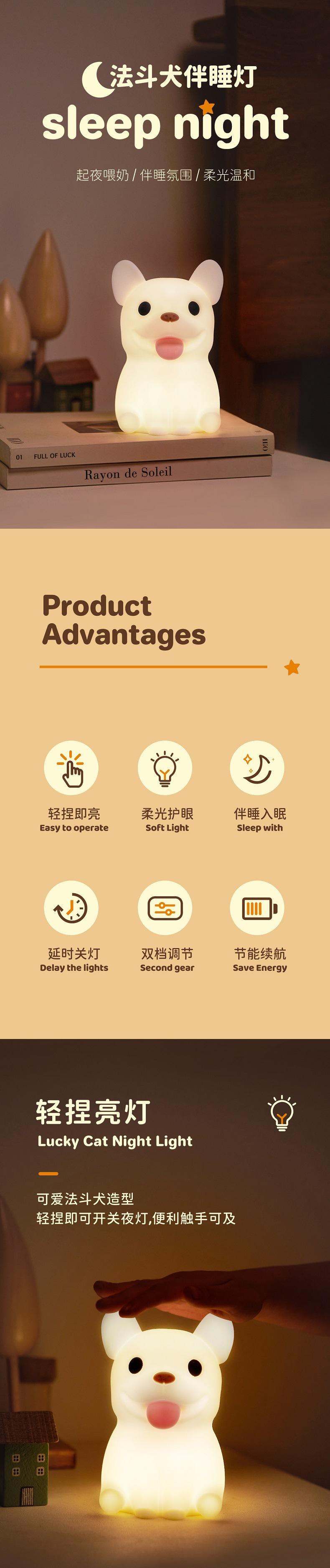 Nome do produto: Luz noturna para buldogue francês