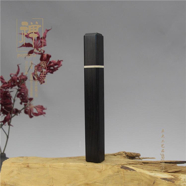 [Nome]: Tubo de incenso quadrado de buxo incrustado em ébano