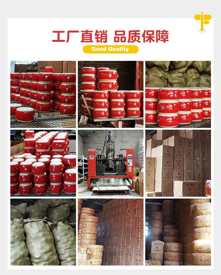 Os vários tambores produzidos por nossa fábrica têm uma boa reputação na indústria. Produzimos principalmente vários tambores regionais de cintura grande, média e pequena, tambores de salão, tambores de guerra agudos, tambores coreanos, tambores de equipe de estudantes de ponta e baixa qualidade, vários tambores grandes vermelhos e brancos e outros excelentes produtos de tambor. Também podemos personalizar vários tipos e especificações de produtos de acordo com os requisitos do cliente, de 5 cm a 3,8 metros de vários modelos de tambores podem ser personalizados. Além disso, nossa fábrica também produz peles de tambor de vários tamanhos para realizar serviços de produção completos.
