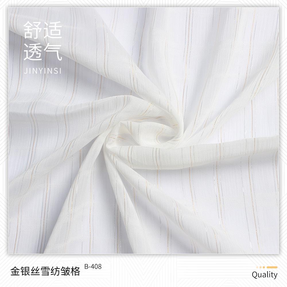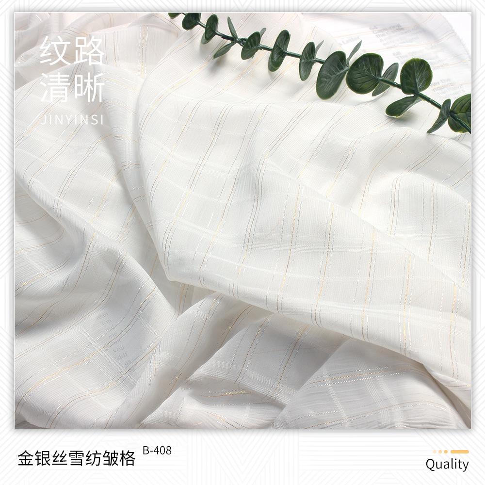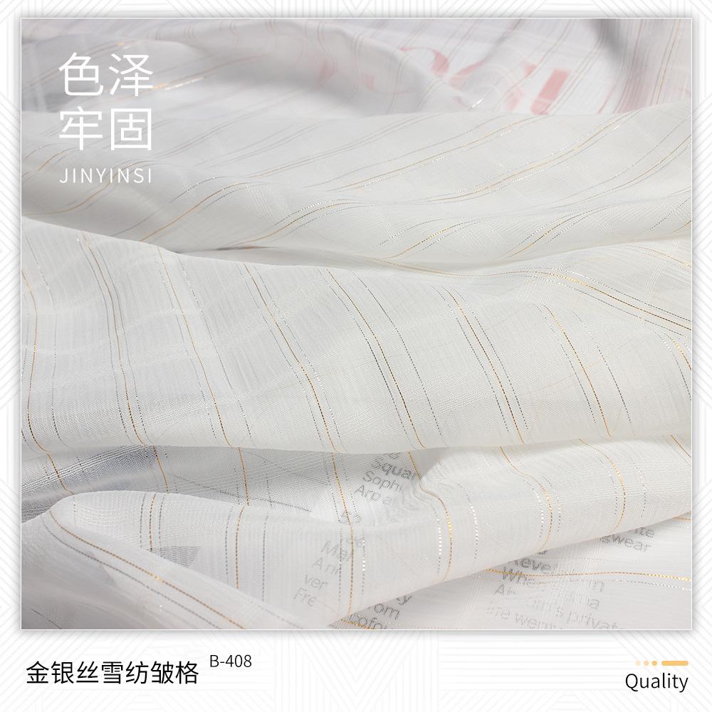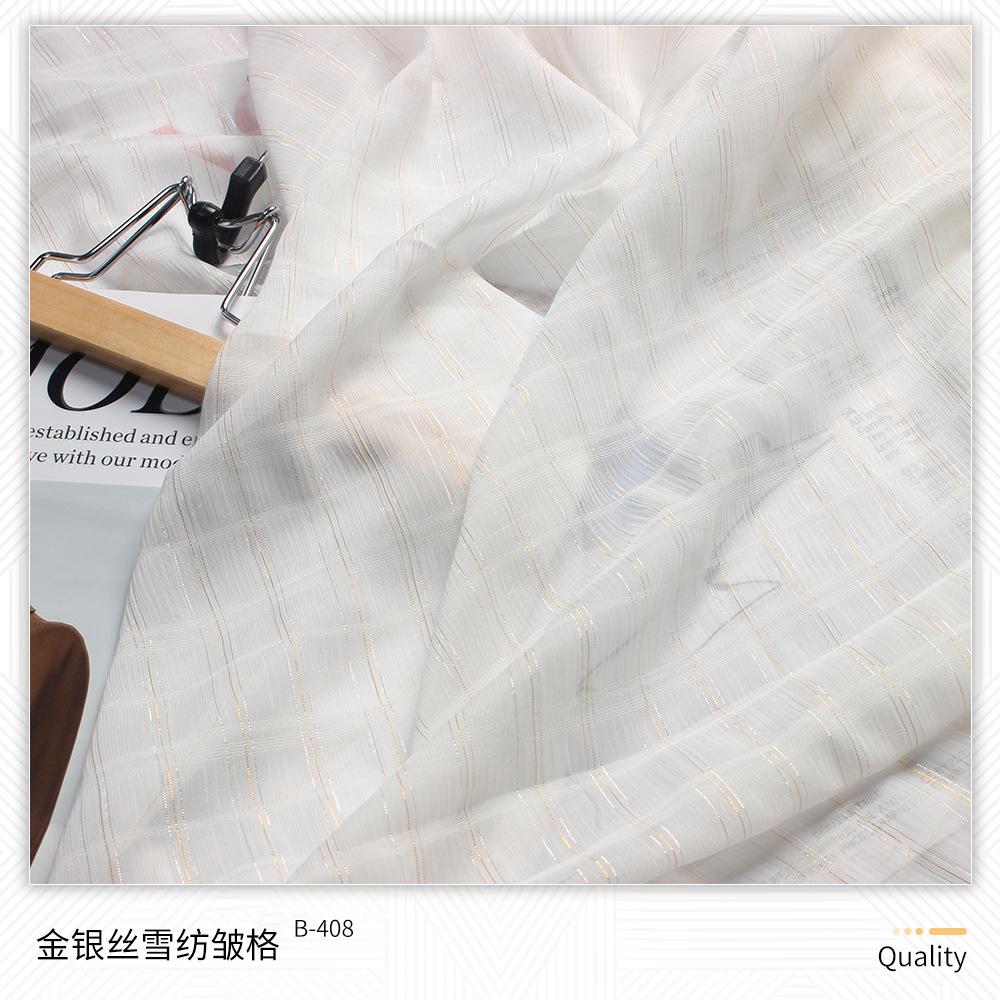 | B-222 | Crepe Shunyu de Seda Colorido | B-404 | Largo Pequeno 2 Prata Seda Beleza Listra Chiffon Crepe | B-527 | CEY Silver Silk Ideias Yonghua | B-711 | Fio de ouro igualmente espaçado com linho trançado |