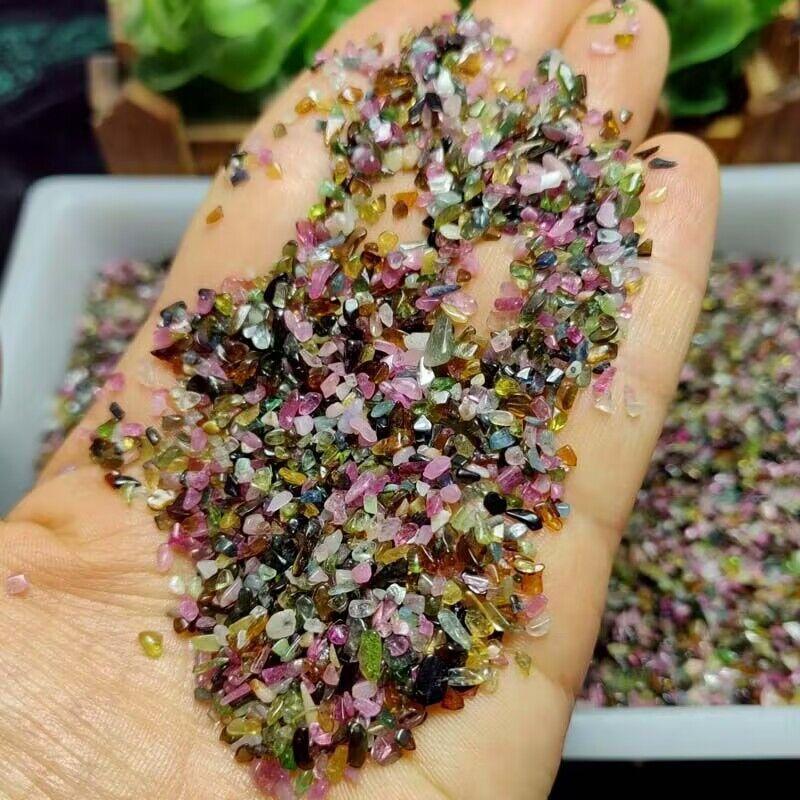 Tamanho: Cada um tem cerca de 1-5 mm de comprimento (o produto em si é irregular e a seleção é relativamente aleatória. Os tamanhos descritos na descrição do produto são tamanhos aproximados e haverá grandes erros. Se o comprador exigir um tamanho estrito, não o recomendamos. Você também pode entrar em contato com o atendimento ao cliente. Não somos responsáveis por quaisquer requisitos de tamanho). As partículas são muito pequenas, mas a cor é muito bonita, o cristal também é muito transparente e a qualidade é muito, muito boa. É um novo produto de venda quente criado por nossa loja, um produto promocional, apenas para ganhar reputação e uma compra por tempo limitado. É muito bem polido. O cristal é muito bom. Comprar duas peças significa comprar 200 gramas e comprar dez peças significa comprar 1 quilo. Não há limite para comprar mais.