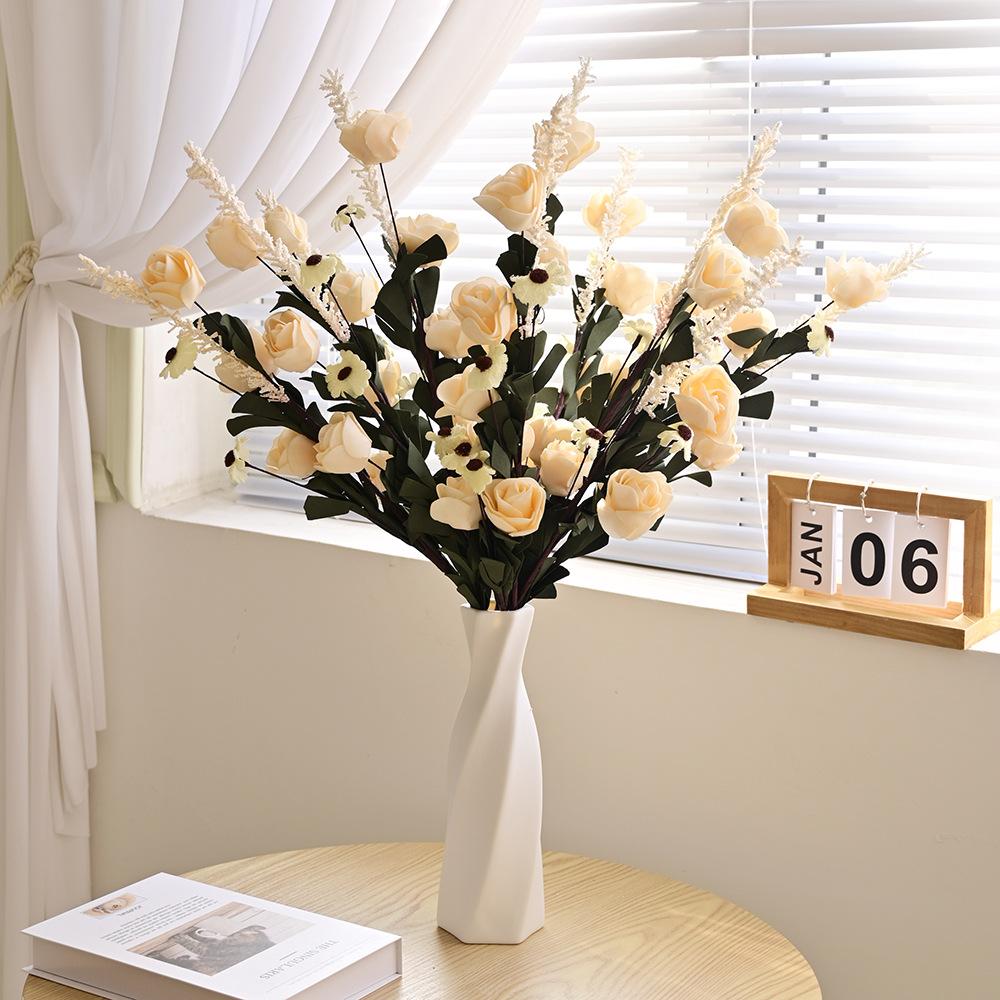 [Especificações do ramo de flor] O comprimento total do ramo é de 75 cm, e cada ramo consiste em 4 flores de rosa, 3 flores de peônia e acessórios