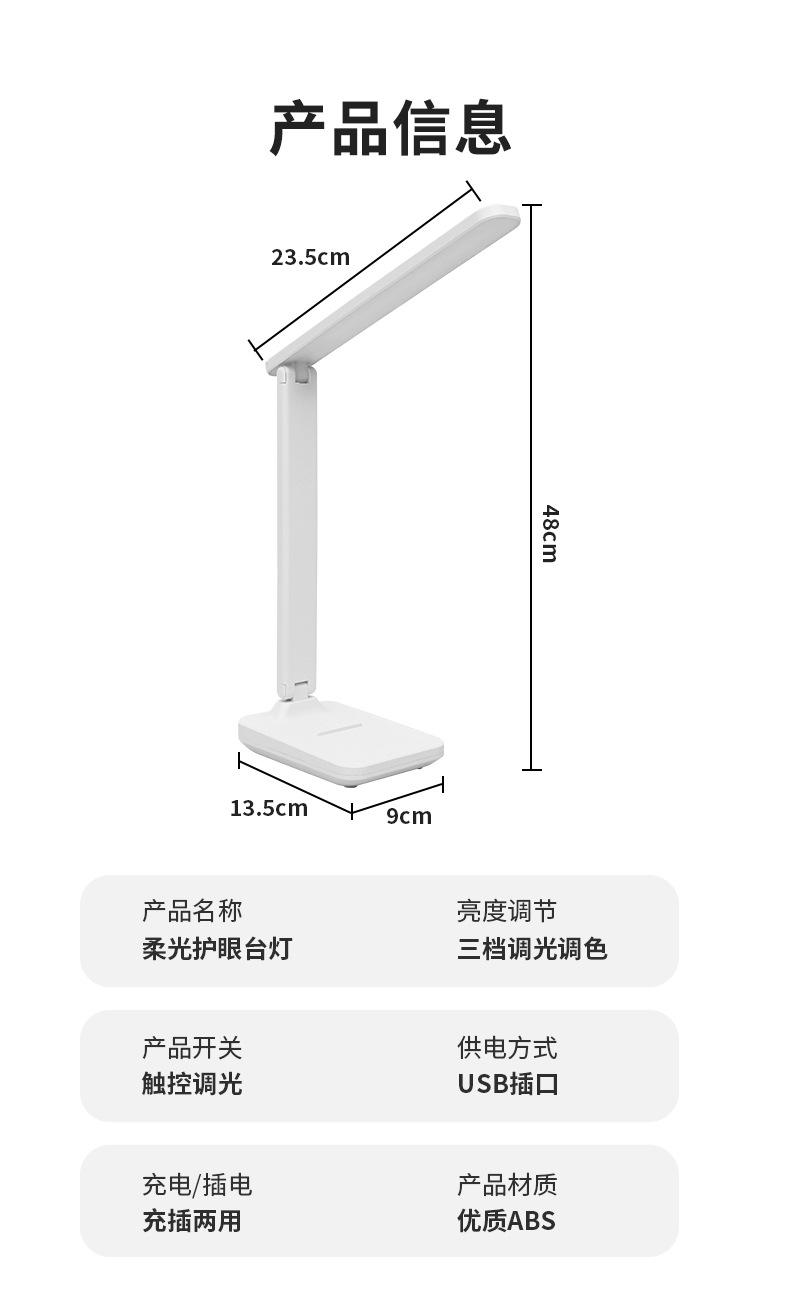 Descripción de parámetros de la lámpara de escritorio con protección ocular de diseño plegable 828: